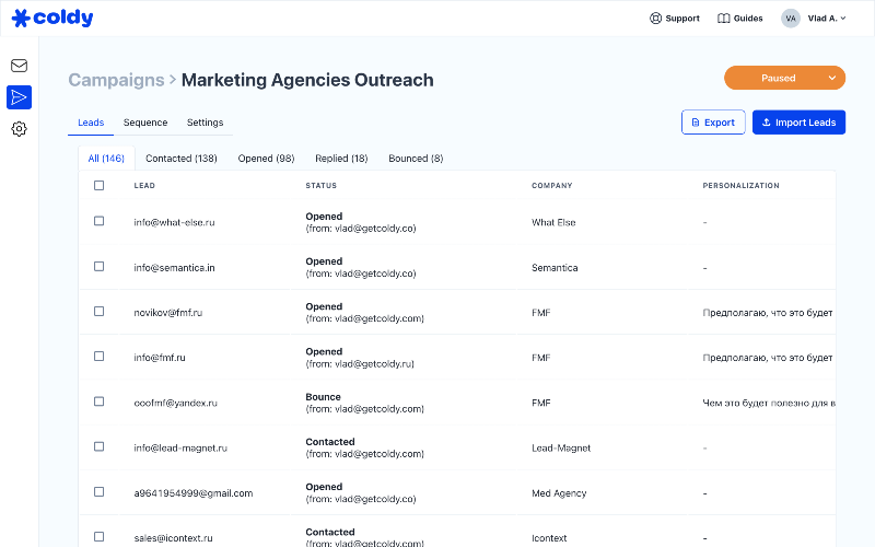 Email software specialised for cold outreach. Tool emulates manual sending of email campaigns, which ensures high deliverability (Open rate >70%). Coldy also has unlimited email warmup, which ensures the high reputation of your email accounts and protects them from being blocked. Tool supports various personalisation methods that can help with building super-personalised email campaigns, as well as light-weight CRM to manage your leads. Coldy support team provides in-depth suggestions on your campaigns and provides lots of guidance for all paid users.