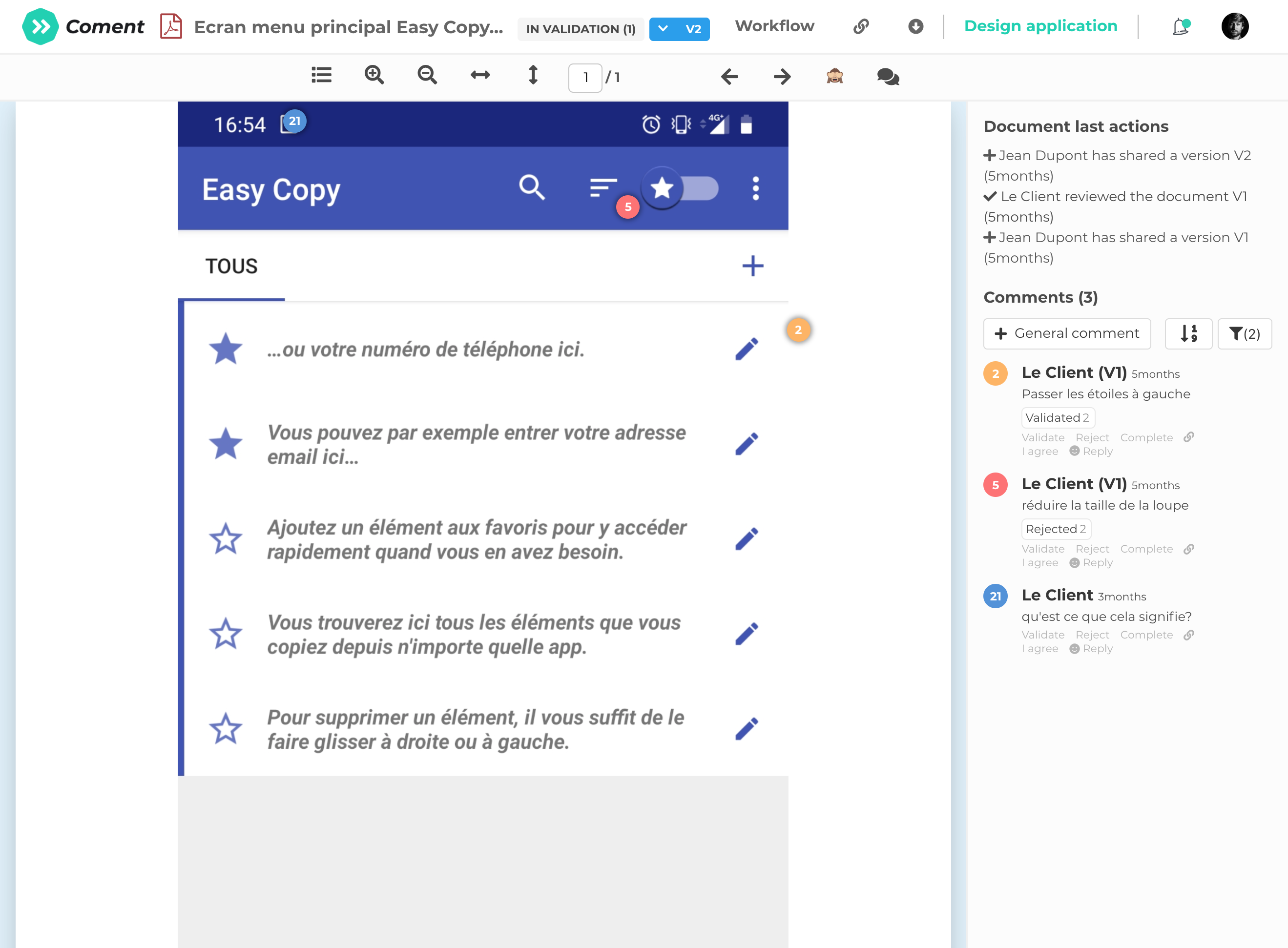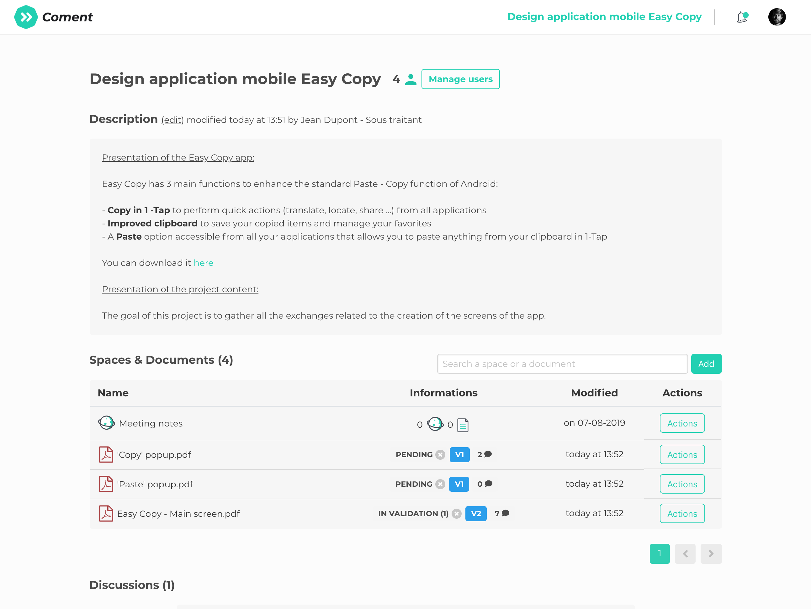 Coment is an online platform to gather, review, validate and comment quickly documents with your teams. Create your team, add documents, invite people for review or validation. View the document, comment, view other's comments in real time, reply, update your versions, and iterate. Every information is centralized in your documents with a very simple user experience. This is the end of infinite email threads with modified attachments and/or bullet list comments.