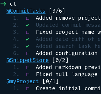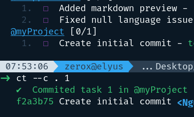 Have you every tired of switching between your terminal & todo list just to know what you next task is after a git commit command? CommitTasks is a combination between todo list and git commit command! You can now write your future commits like a todo list and commit them with a short simple command.