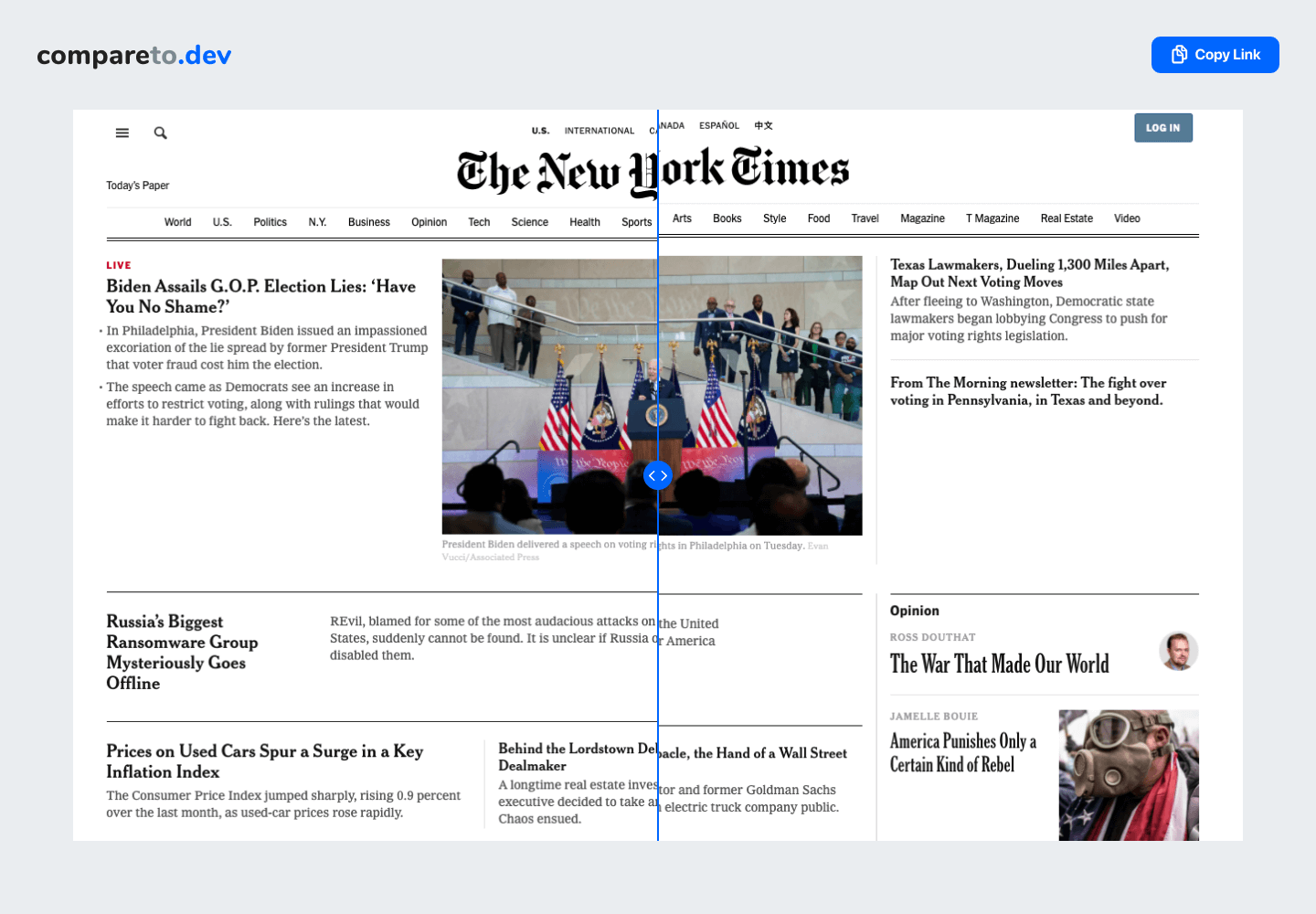 As many know, your digital product (website, mobile application), after being implemented by the developers, may not correspond to the original design. These can be pixel counts or larger differences such as fonts, spacing, padding, and more. To facilitate communication between designers and programmers, we created this simple image comparison service with the ability to share a link to a specific comparison page. In addition, the tool allows anyone without the experience of graphic editors to superimpose two images on top of each other and compare them.