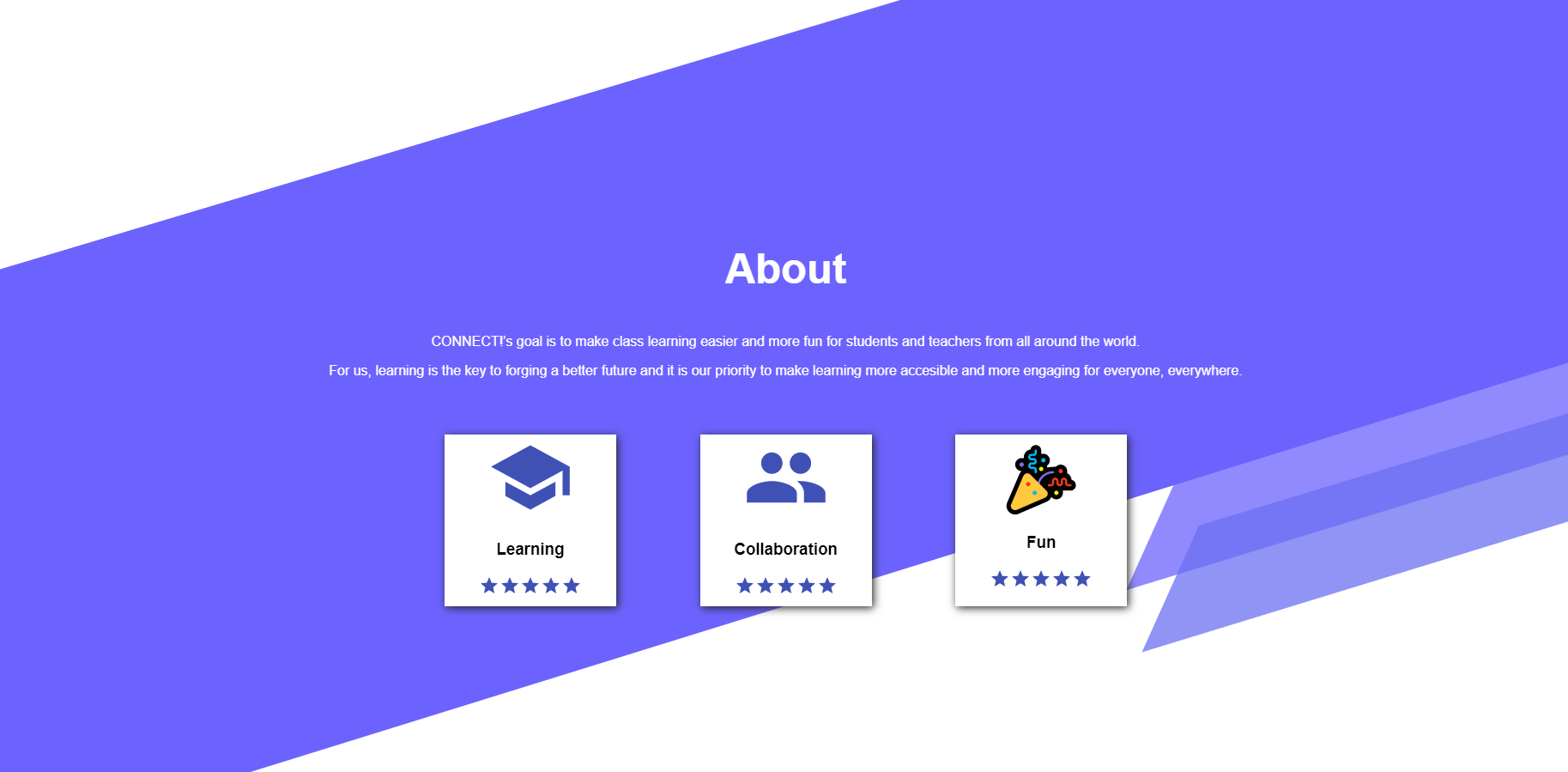 CONNECT! is a website that was built using React and a JavaScript library called socket io to establish real-time connection. CONNECT!' s main purpose is to learn together by competing in fun fast paced multiplayer quizzes that have been created by the community or by yourself.