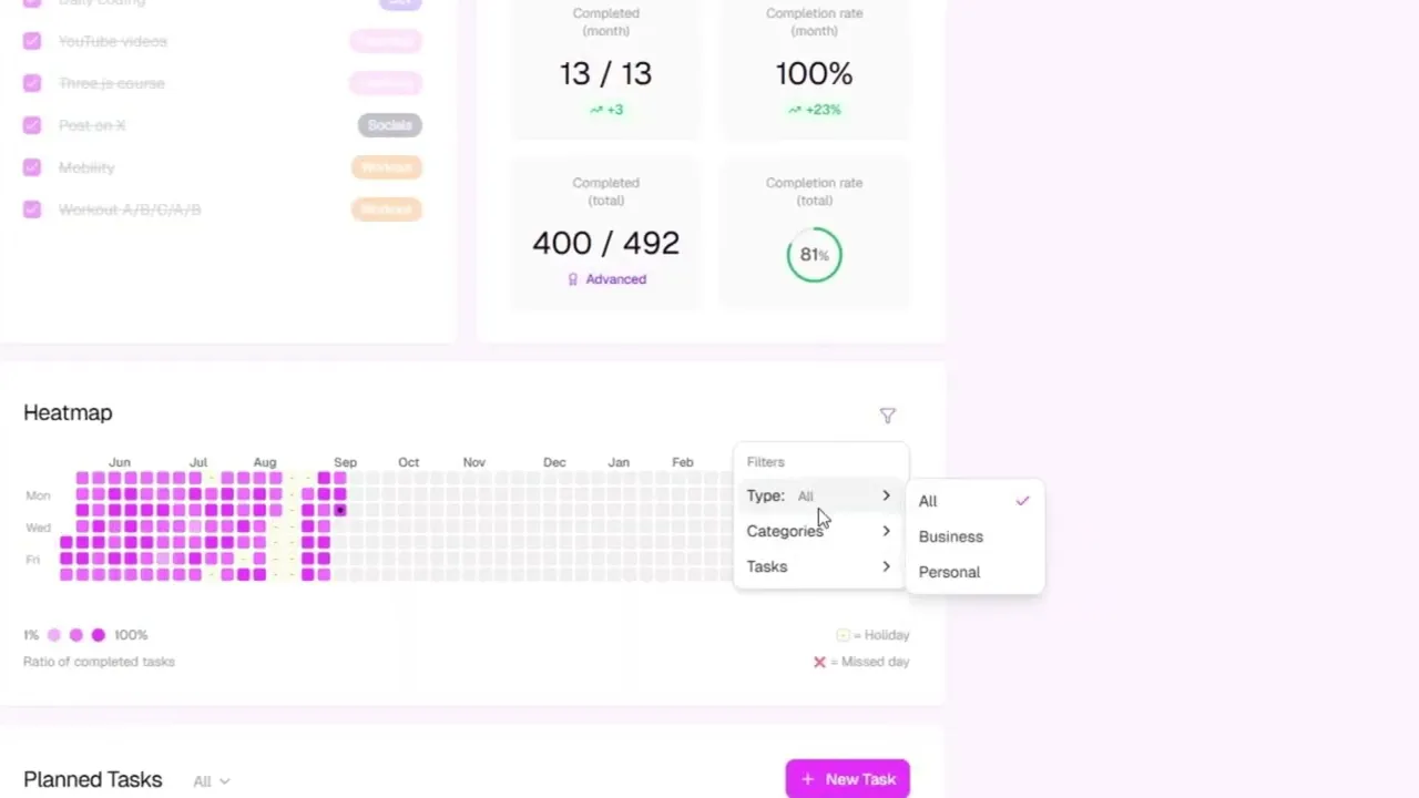 Consistrack is a GitHub for recurring business tasks & personal habits that helps indies and solopreneurs grow with clear feedback on their consistency. - Auto-generated daily to-do lists based on your recurring tasks - Reminders (push/mail) - Visual tracking (heatmap, stats, streak...) - Days-off, holiday mode... - *NEW* public community-based/group challenges with leaderboards (marketing, networking) Try it now (no signup needed to try the dashboard in guest mode), no credit card required. Join the waitlist to get notified when the pro plan launches (discount on subscriptions if you're coming from here!)