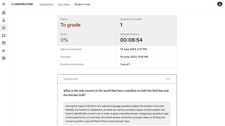 Constructor Assess simplifies the process of creating, proctoring, assessing, and securing online quizzes. It features an easy-to-use AI quiz generator and automates assessments while ensuring integrity with real-time AI proctoring that prevents cheating and the sharing of exam questions. With multi-lingual support, it’s accessible worldwide and built for today’s diverse educational and online certification needs. Designed for teachers, test creators, low testing volume corporate users, small remote testing or certification centers, and credentialing organizations needing efficient, secure, and fair remote assessments.