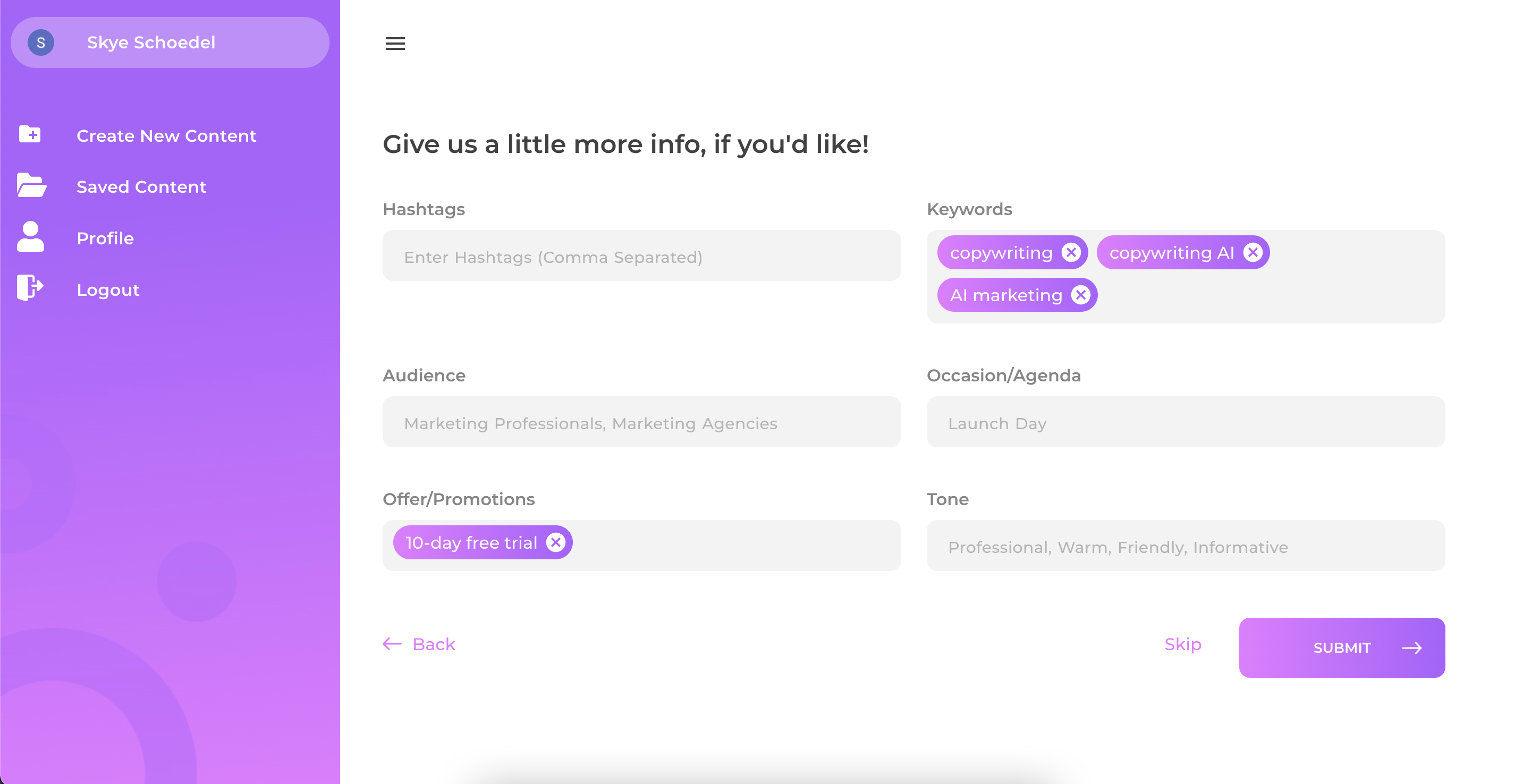 Marketers, founders, business owners, and copywriters - our tool is for you. Content Launch AI helps you to generate marketing copy on-demand through artificial intelligence. Whether you need a social post, inspiration for your next Google Ad, or a Shopify product description, we have you covered. We are officially LIVE and are excited to welcome our early adaptors to the platform. Start free today and see what the hype is about! https://app.contentlaunch.ai/register