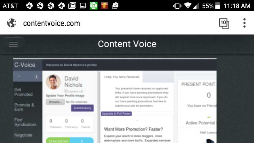 Content voice is a social network where users submit and promote content by link advertising from their own site. It is the first goal driven social network of its kind where users not only interact but initiate real tangible changes to the world and the web.