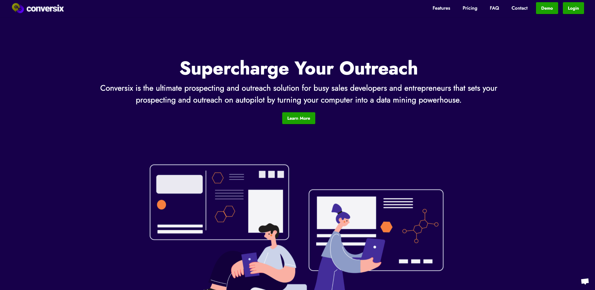 Conversix is the ultimate prospecting and outreach solution for busy sales developers and entrepreneurs that sets your prospecting and outreach on autopilot by turning your computer into a data mining powerhouse.