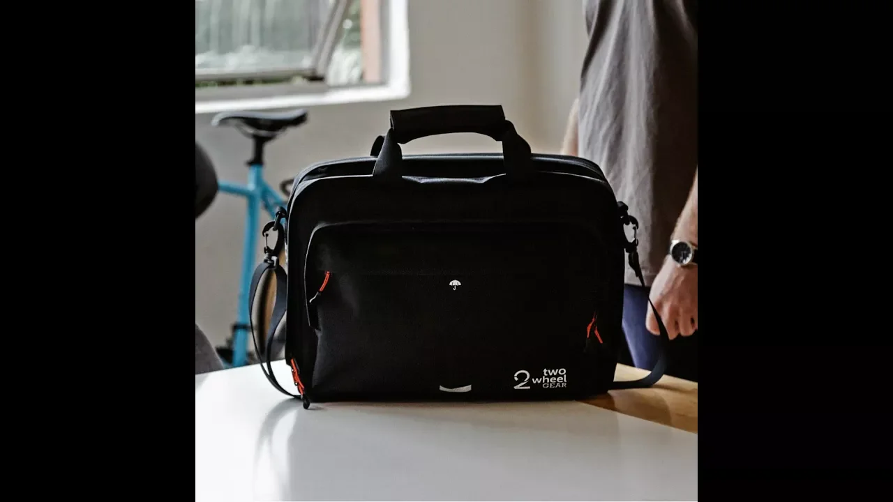 The Convertible Bike Briefcase is the most organized laptop pannier for bike commuters. It quickly converts between a bike rack mounted pannier and a professional messenger style briefcase in a matter of seconds. Its a hybrid bag designed specifically for biking to work. It doesn't look, function or carry like any pannier you've seen before. The German-made Rixen & Kaul Klickfix hooks lock the pannier to the bike rack. Additional mini inserts are included that clip inside the hooks (if necessary) for small diameter bike racks. The mounting system neatly zips away behind a foam padded panel. The bag features four organized pocket sections: Section 1: Padded Laptop & Accessories Organization Section 2: Daily Trip Items Organization Section 3: Accessories (Phone/Passport/Keys/Cords) Section 4: Rain Cover / Wet Gear (Front Pocket)