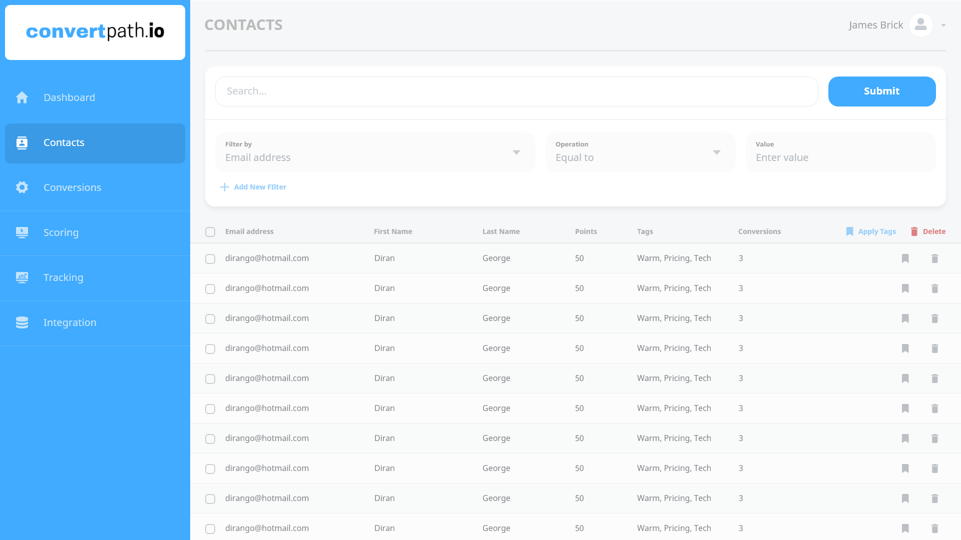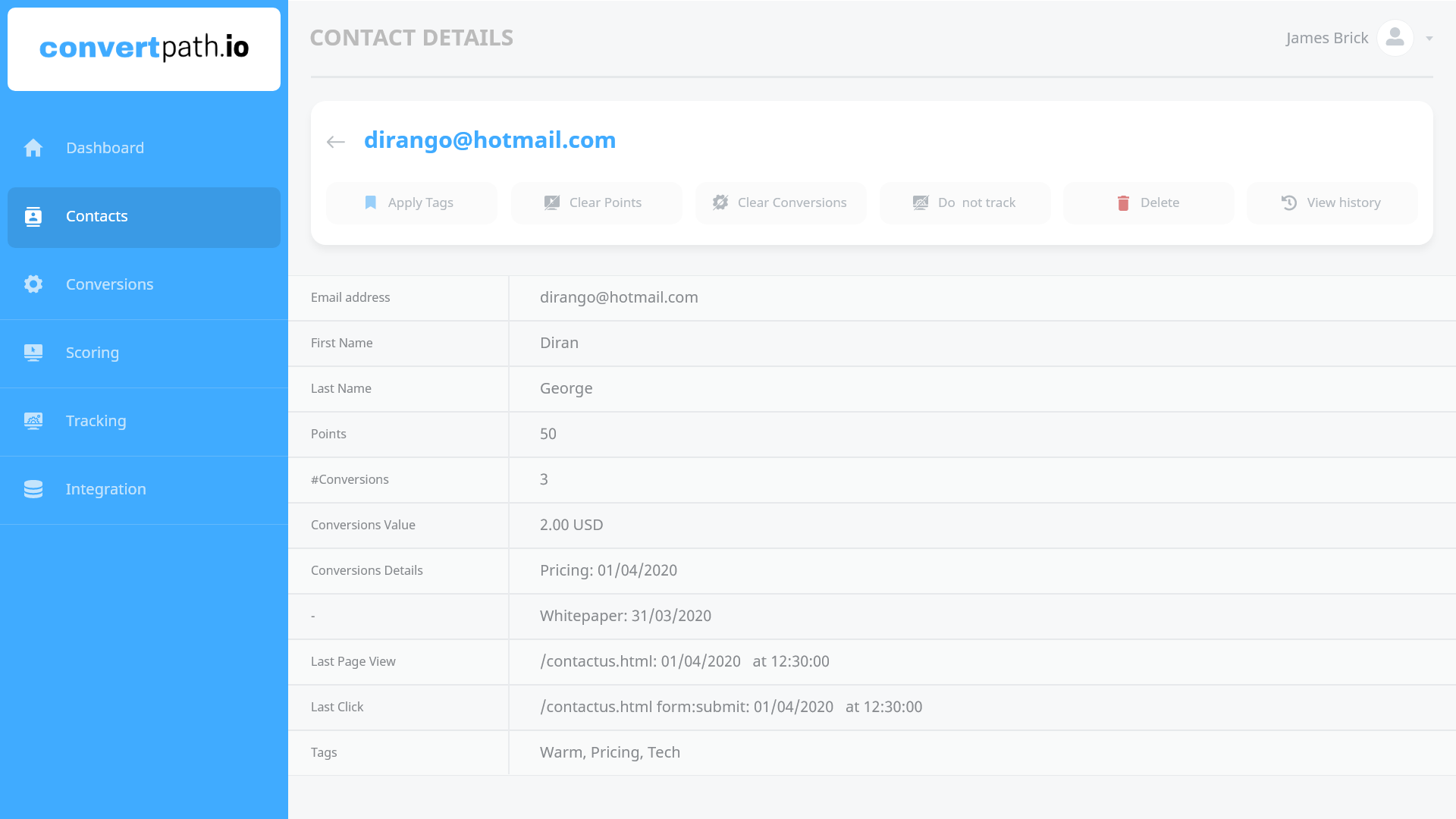 Convertpath.io helps businesses sell easier and faster. It is an analytics & intent data platform for sales engagement & CRM that helps sales teams convert leads and close customers faster. It works by identifying & evaluating prospects, "filling the hole" between email prospects' link clicks and their interactions on the website and measuring outbound campaign conversion success