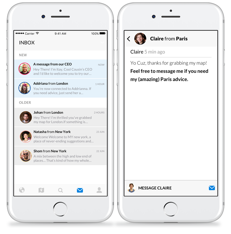 Cool Cousin build communities in cities around the world of captivating locals (aka “Cousins”) who LOVE their city and are passionate about sharing it with others. The app then allows users to directly connect with these Cousins who spark their interest. -Connect with awesome locals -Get insider guide for every city you visit -Message insider for personalised guidance