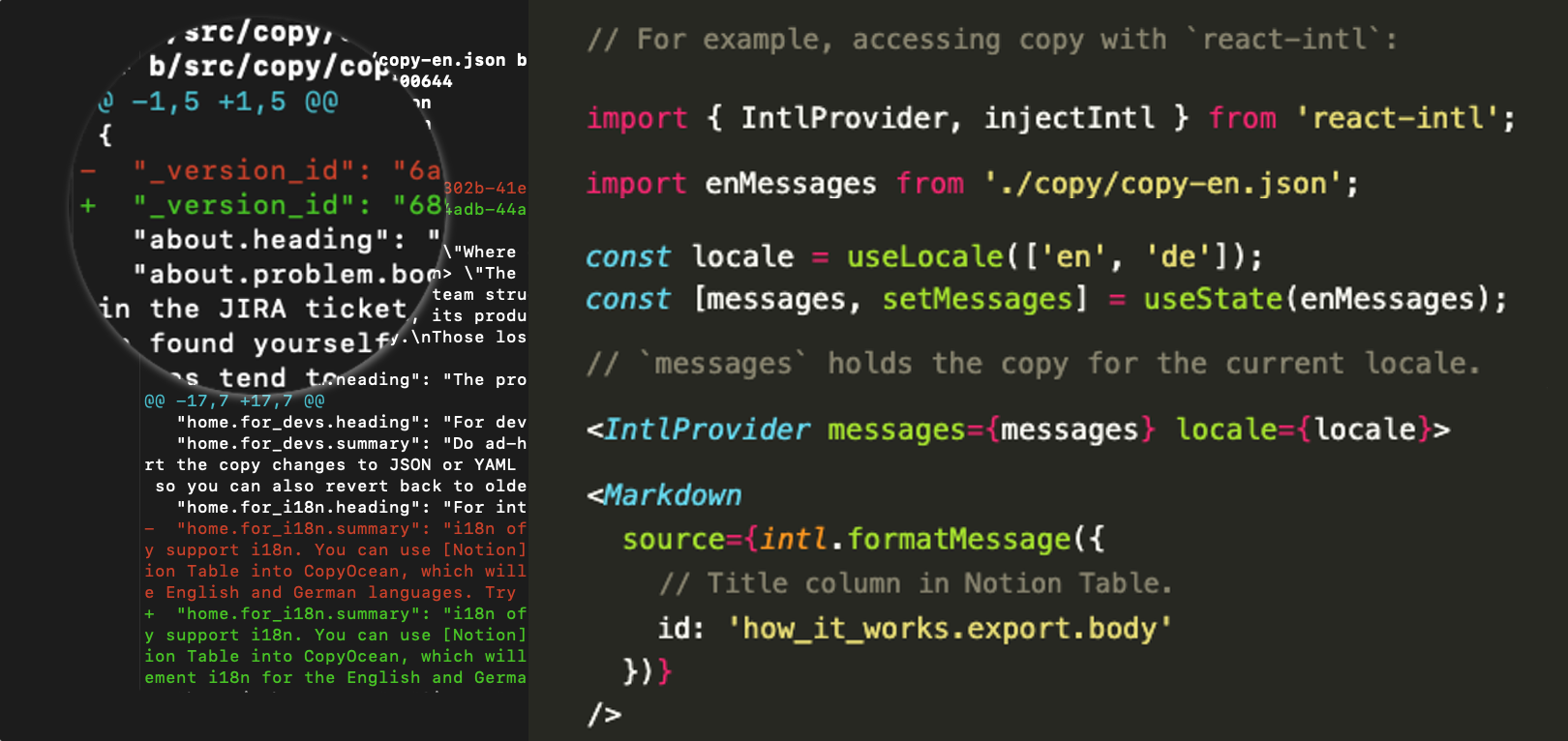 Write copy in Notion, export to JSON with CopyOcean. For copywriters, product managers, developers.