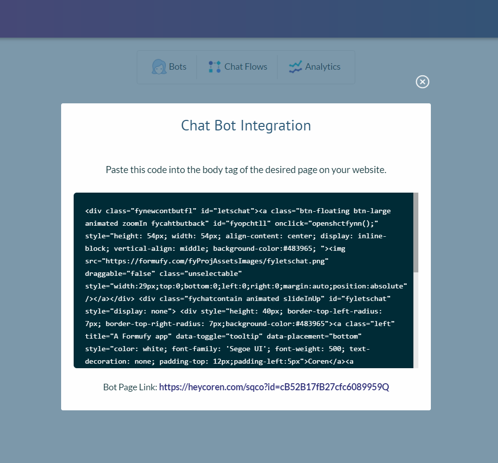 Coren allows you to easily build, train and deploy your bots without any coding. With Coren, if you can draw a flow chart, you can build a Bot. Don't leave your website visitors hanging, create a bot that will help them out when you're not available. - A Formufy App