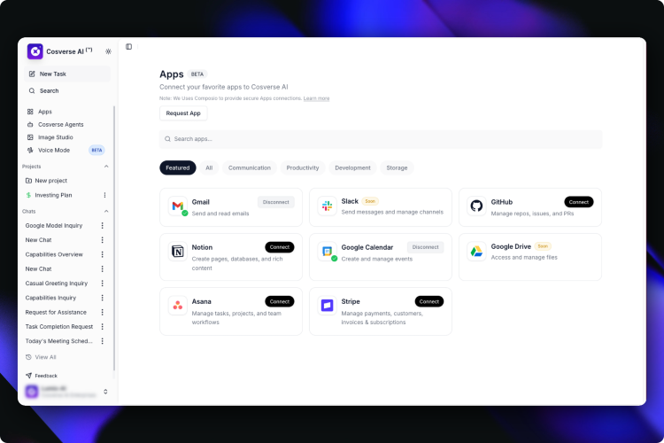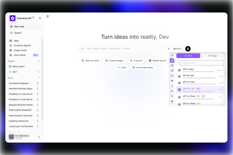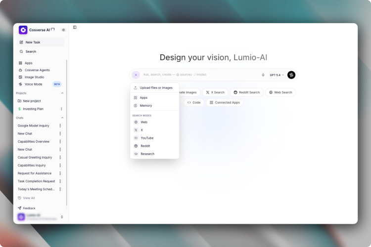 Cosverse AI is an all-in-one AI workspace designed to bring multiple powerful AI tools into a single platform, so users don’t have to switch between different apps. It allows access to top AI models like GPT, Claude, Gemini, and others, enabling users to choose the best model for each task such as writing, coding, research, or problem-solving. The platform includes features like advanced AI chat, image generation, real-time web search, file interaction with PDFs and documents, and the ability to create custom AI agents for automation. It is built to improve productivity by combining everything—chat, images, search, and workflows—into one unified dashboard. Cosverse AI is used by students, developers, creators, and businesses who want a faster, more efficient way to work with AI while reducing the cost of subscribing to multiple tools.