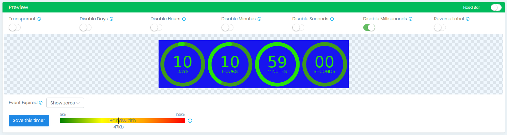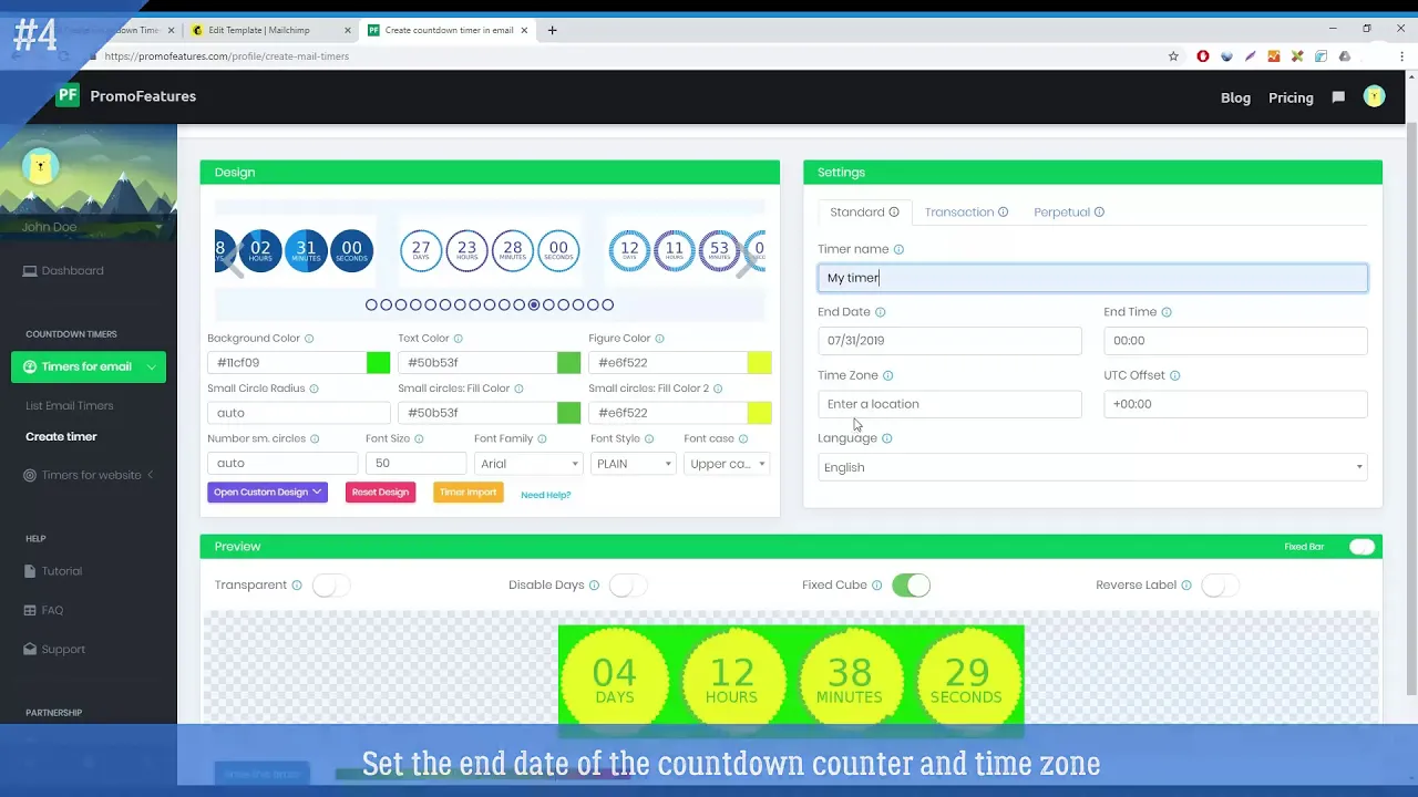 With the help of our timer constructor, you create a snippet of code that you should copy and paste to your email into HTML. It is quite easy to create this code. You only need to choose the design of the counter, then specify its size, color, etc. (we have a lot of additional settings with which you can make a timer for every taste). Then you need to choose the end date of the counter, then click "Save" and your HTML code is ready for embedding in the letter.