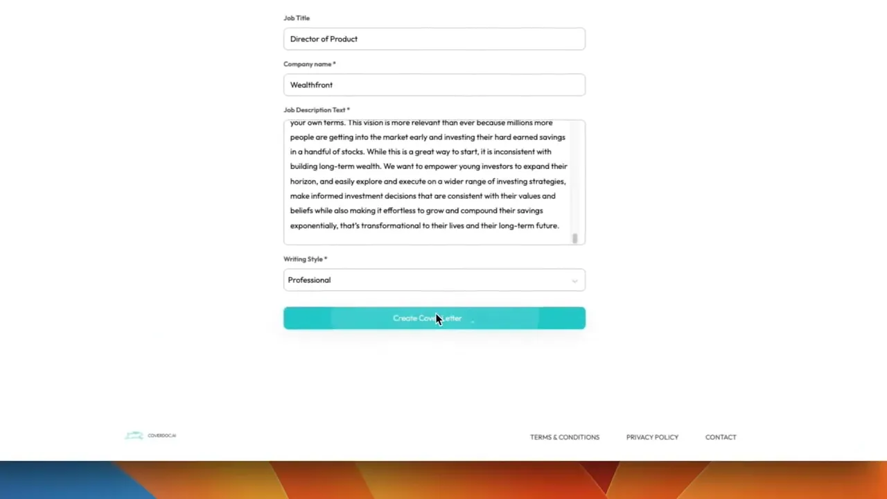 Job seekers spend a lot of time writing original, personalized cover letters for each job. This leads to inefficiency when applying to many jobs and longer time unemployed. Job seekers will simply skip job applications that require a cover letter. Non-technical job seekers may not have easy access to AI tools such as ChatGPT. We created a simple way to create a first draft cover letter that factors in your work experience, company info and your preferred writing style. The job seeker provides basic info about the job and the tool leverages OpenAI to create a Google doc sent to the job seeker within minutes. Each generated cover letter includes an Originality score to inform how much effort you should put into revising the cover letter draft so the document stands out from the crowd.