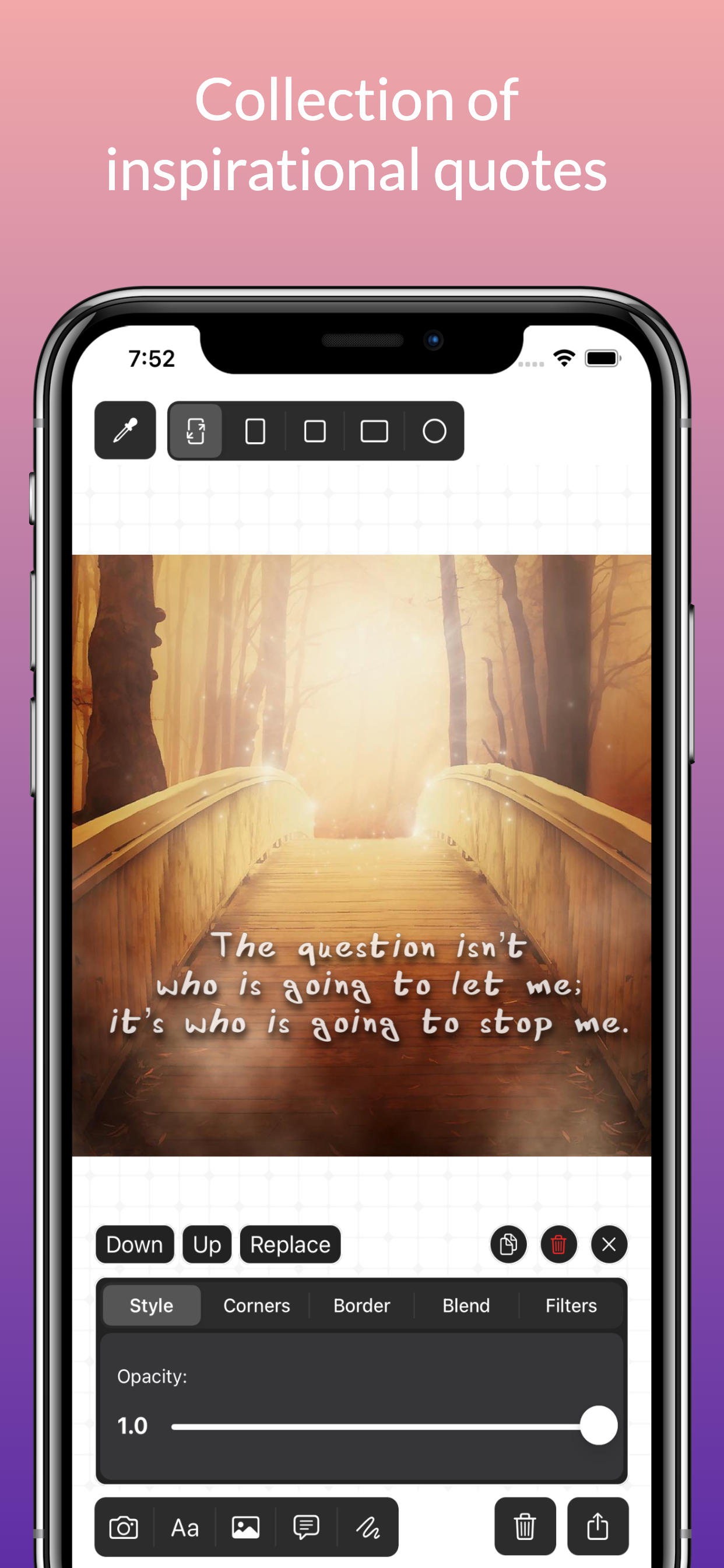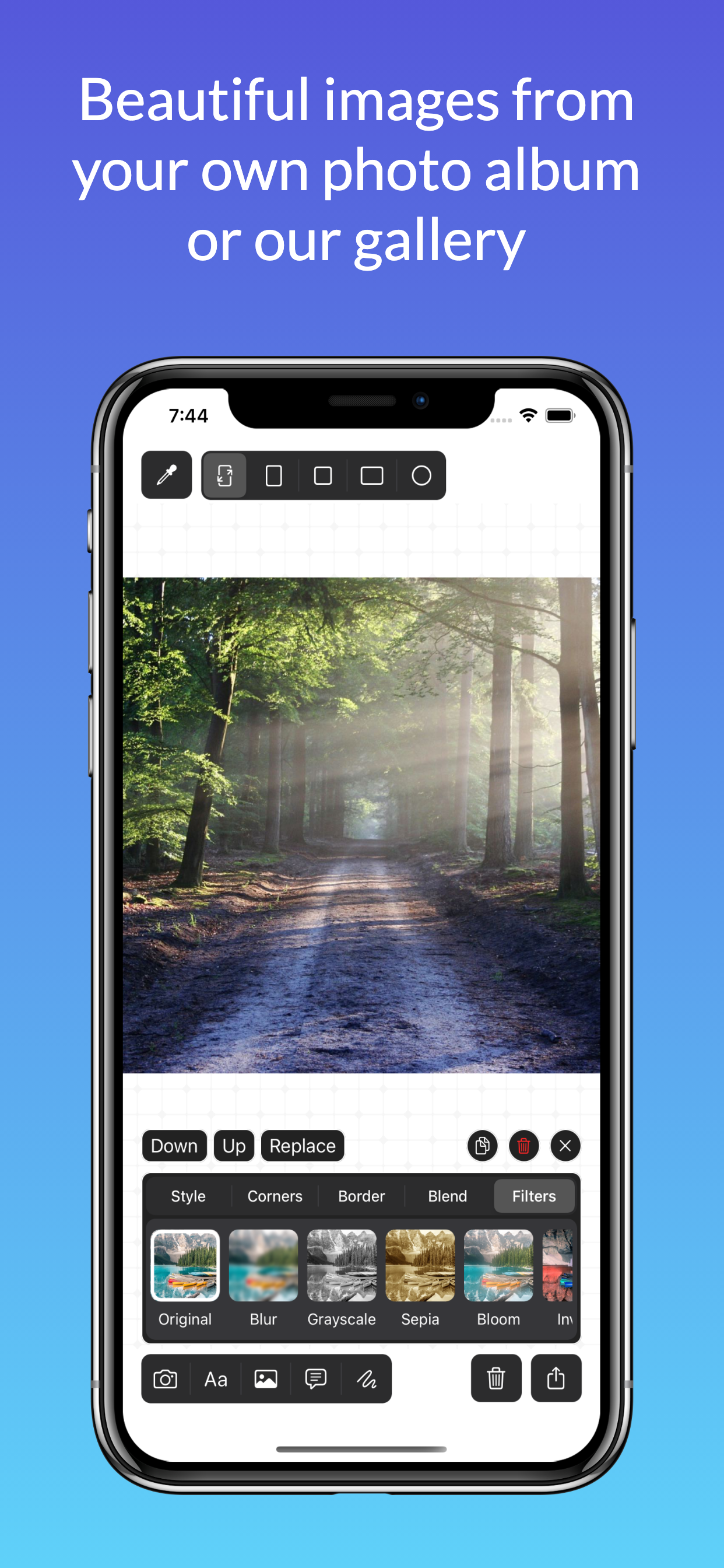 Cre8 is a photo editing App that allows you to create artworks in minutes! You will find all essentials that are needed for editing photos, working with layers, blending, cropping, filters, stickers, quotes and drawing. It also has different canvas sizes in order to help you to create great insta-stories or posts.