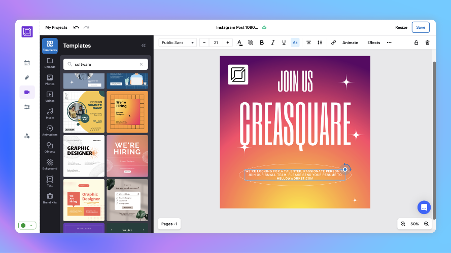 Creasquare is an Al-powered platform, that makes it easy to create graphic designs, videos and copywriting content. Schedule your content to all your social media platforms, all in one place.