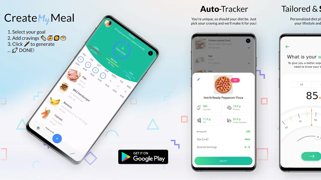 With CreateMyMeal it's easy to create delicious meals that fit your goals, cravings, and macros in one-click! Your diet is about to get a whole lot tastier. Now you can eat guilt-free with personalized recipes tailored just for you - because why should you deny yourself delicious food? Want an extra slice or two of pizza and don't know how to fit it into your meal? No problem! Simply specify your desired slices and generate! No matter if you're Paleo, ketogenic, gluten-free, Atkins, dairy-free, vegetarian, vegan, Weight Watchers, low carb, or just trying to lose weight. Just pick your craving and we’ll make it for you! No stress, no fussing, and best of all no calorie tracking necessary! Ugh...not another meal planning tool?? We know, we know...there are lots of meal planning services out there, so why should you care about us? Well, here's why... Having tried most of the existing tools in the market, we can say we've felt quite displeased with the lack of personalization and tedious efforts the user would undergo to create a meal that fulfilled their cravings. We believe the best diet plan is the one tailored to your body and taste. At CreateMyMeal we optimize for you by considering your personal tastes, health goals, and nutritional needs. We've already done the thinking for you, so forget about calories, and start creating your very own mouth-watering meals. It's easy, simply: 1. Select your goal 2. Drag 'n drop your cravings 3. And click to generate your meal Let's make eating healthy easier than ever before. So, what are you waiting for? Join the Beta and start creating meals that make you smile!