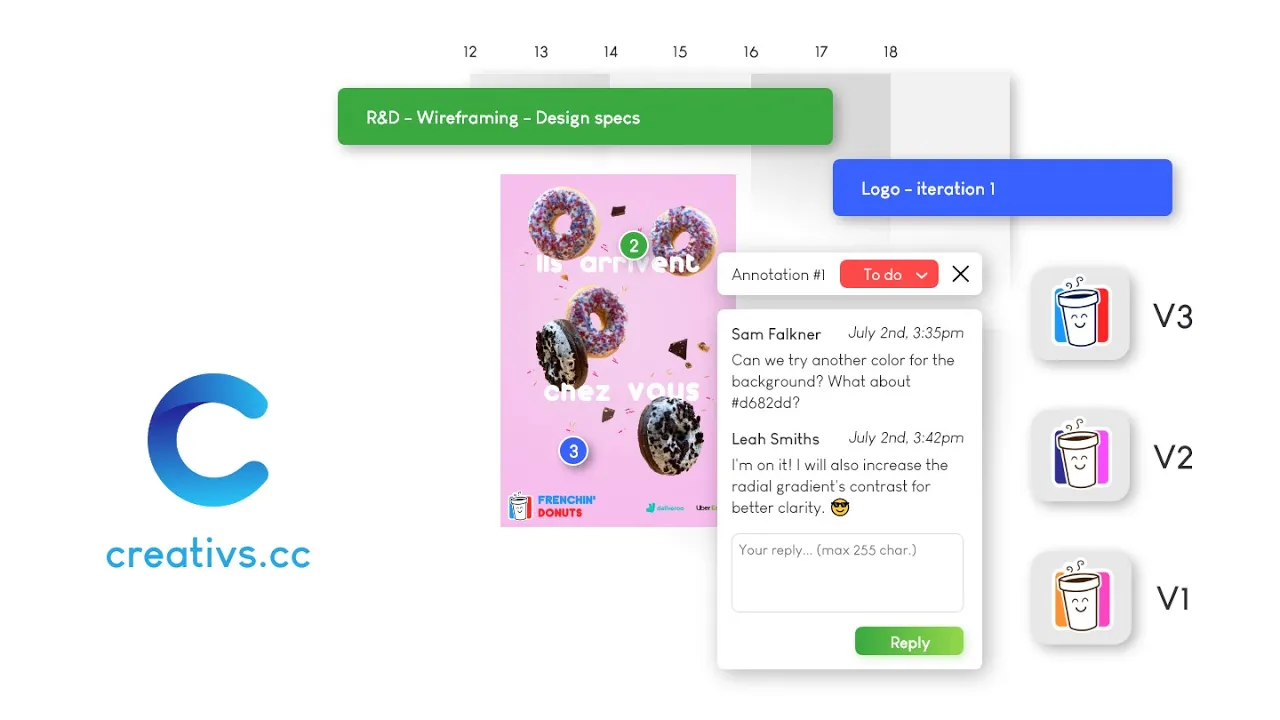 Creativs is a collaboration platform that lets you gather feedback from your clients and communicate with them, as a (UI) designer, photograph, advertiser, and more. - Receive contextualized requests on multiple versions and documents thanks to the annotation system. - Keep a detailed event log for each of your projects with the versioning system and event log. Changes made from one version to another can be seen by both you and your clients. - Work on multiple documents in the same project: logos, website wireframe, UIs, posters... Our beta is currently free and unlimited. At Creativs, we want you to save extra hours of work due to collaboration issues and concentrate on your real job: design!