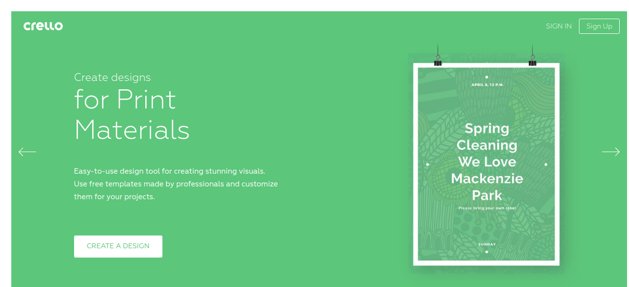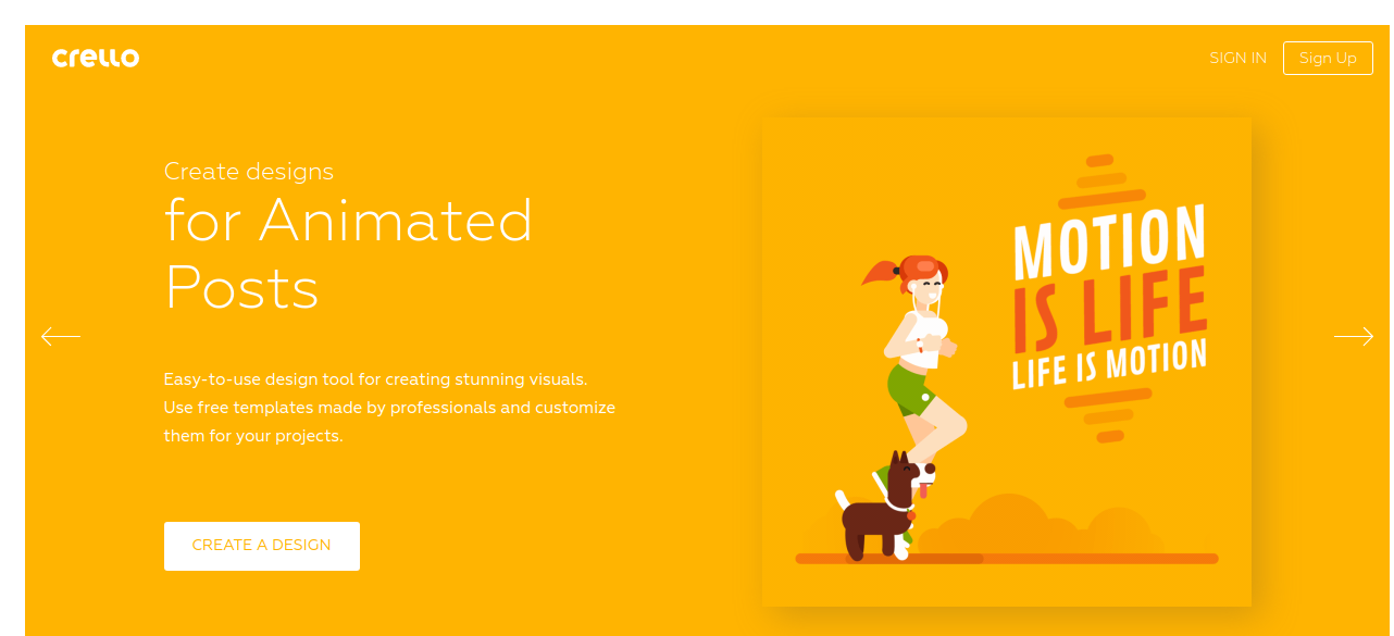 Crello is a visual editor, it allows creating social media images, ad banners, posters, email headers, and other popular formats.