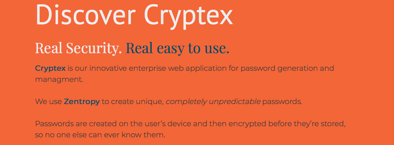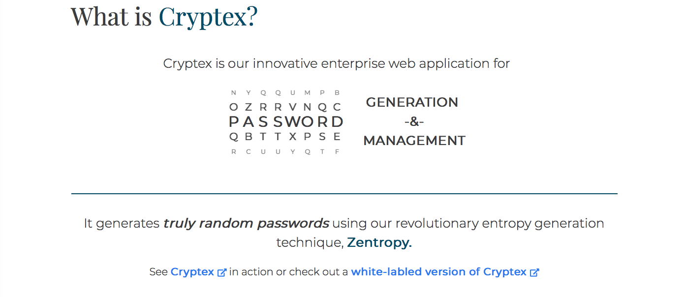 Considering a large proportion of data breaches and identity theft come from poor password hygiene we have built a secure password generation and management web application we call cryptex. It uses our pure entropy to create unpredictable passwords, it’s cross-platform, easy to use, most importantly available for white label adoption. There are many password generation platforms but the secret to ours is really how we generate those passwords like no one else does. We generate truly unpredictable random bits using a mechanical process that can generate cryptographically secure keys or passwords. Unlike other generators, all of our passwords are created on the user's device not on the server side so we have no way of knowing what your passwords are. Our technology brings a physical means of random number generation into the digital sphere, guaranteeing that the random numbers it generates are truly random as opposed to pseudo-random.