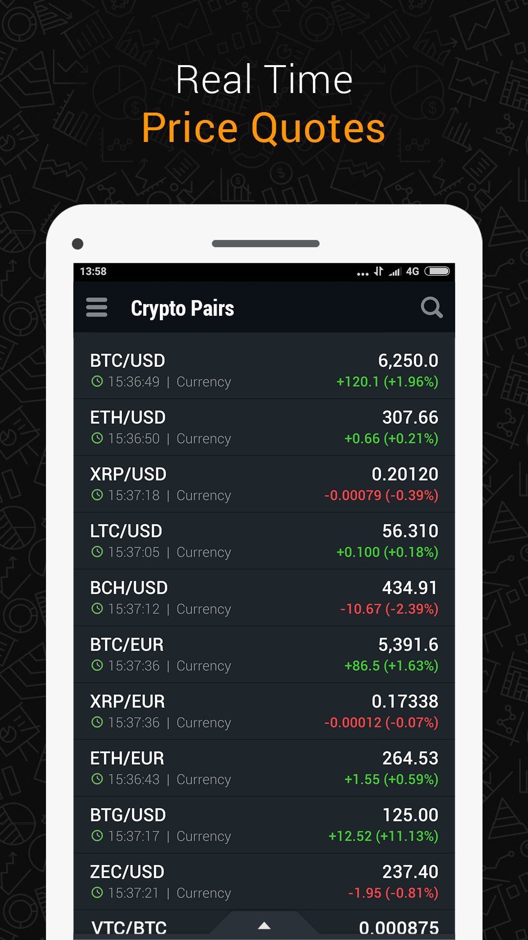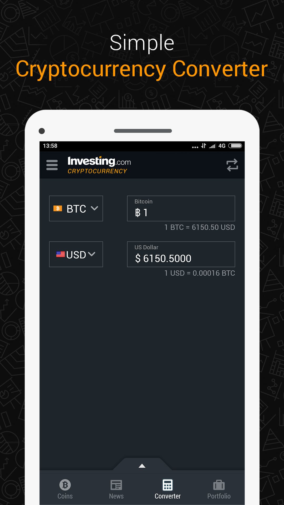 Investing.com's new dedicated Cryptocurrency App, available for both Android and iOS, is the app for all things cryptocurrency. The app offers a free portfolio tool, price alerts, and many additional ways to keep up-to-date on digital currencies. Investing.com offers an overview of cryptocurrency markets, ideal for tracking prices and exchange rates. * Real-Time and historical price data tracking for a variety of digital assets * Quotes for more than 900 altcoins and fiat currencies * Market capitalization per altcoin * Market dominance * Trading volume * Percentage change in price for 1D, 7D