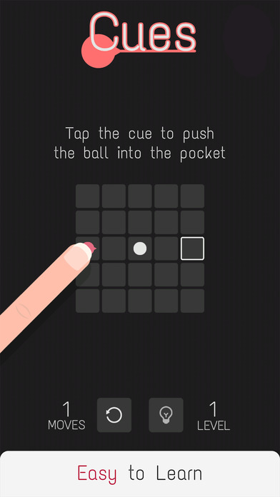 First of it's kind Puzzle Simple moves and Challenging Puzzles , An addictive experience. A first of it's kind Puzzle - Challenging yet relaxing. Cues is a first of it's kind Puzzle Game inspired from Chess. The game is simple enough to play and hard enough for you to Enjoy. All built upon beautiful visuals and relaxing music, Definitely a feast for your brain. How to play ? - - - - - - Place the ball in the pocket using the Cues to complete the Puzzle. Vast number of different challenging puzzles to solve from. Multiple paths to reach the Pocket. Can you find the shortest path? 75 carefully crafted levels and more being added The new Level Maker! Design your own custom Puzzles and Challenge your friends instantly. Different themes to choose from and suit your taste! All your levels are safely stored in the Cloud and you can get back to them anytime.