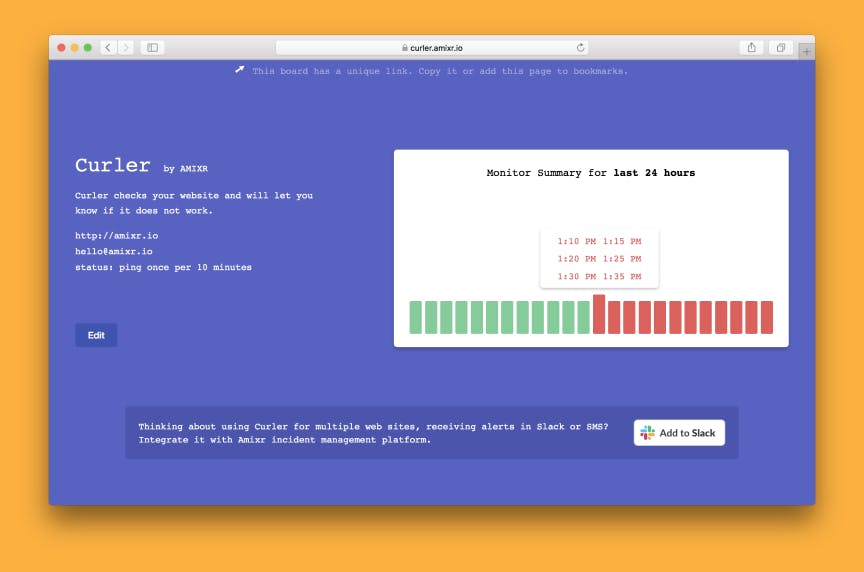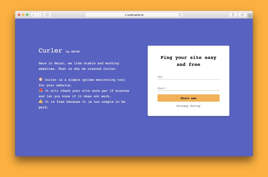 Curler is the most straightforward Uptime Monitoring for your website, blog or whatever. https://medium.com/@matveykukuy/why-the-heck-did-we-build-one-more-uptime-monitoring-saas-9a20005dfe83?ref=producthunt