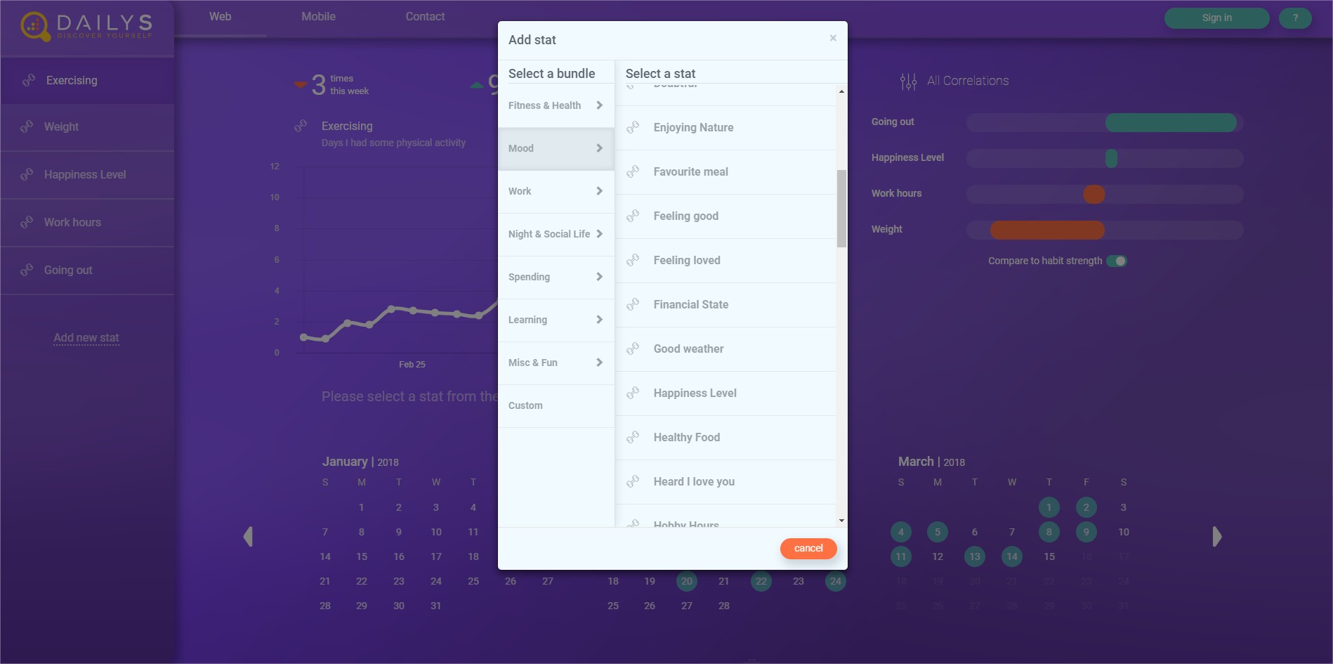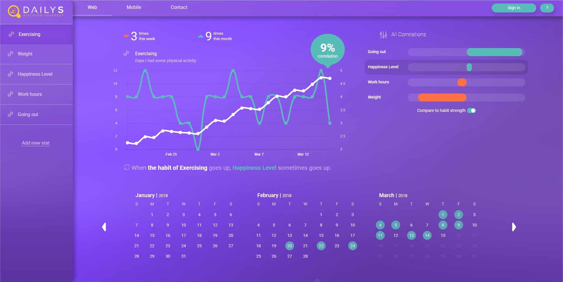 DailyS lets you track all aspects of your life and applies correlations to show you how they impact each other. Using this information, figure out which positive links to boost and negative ones to cut :)