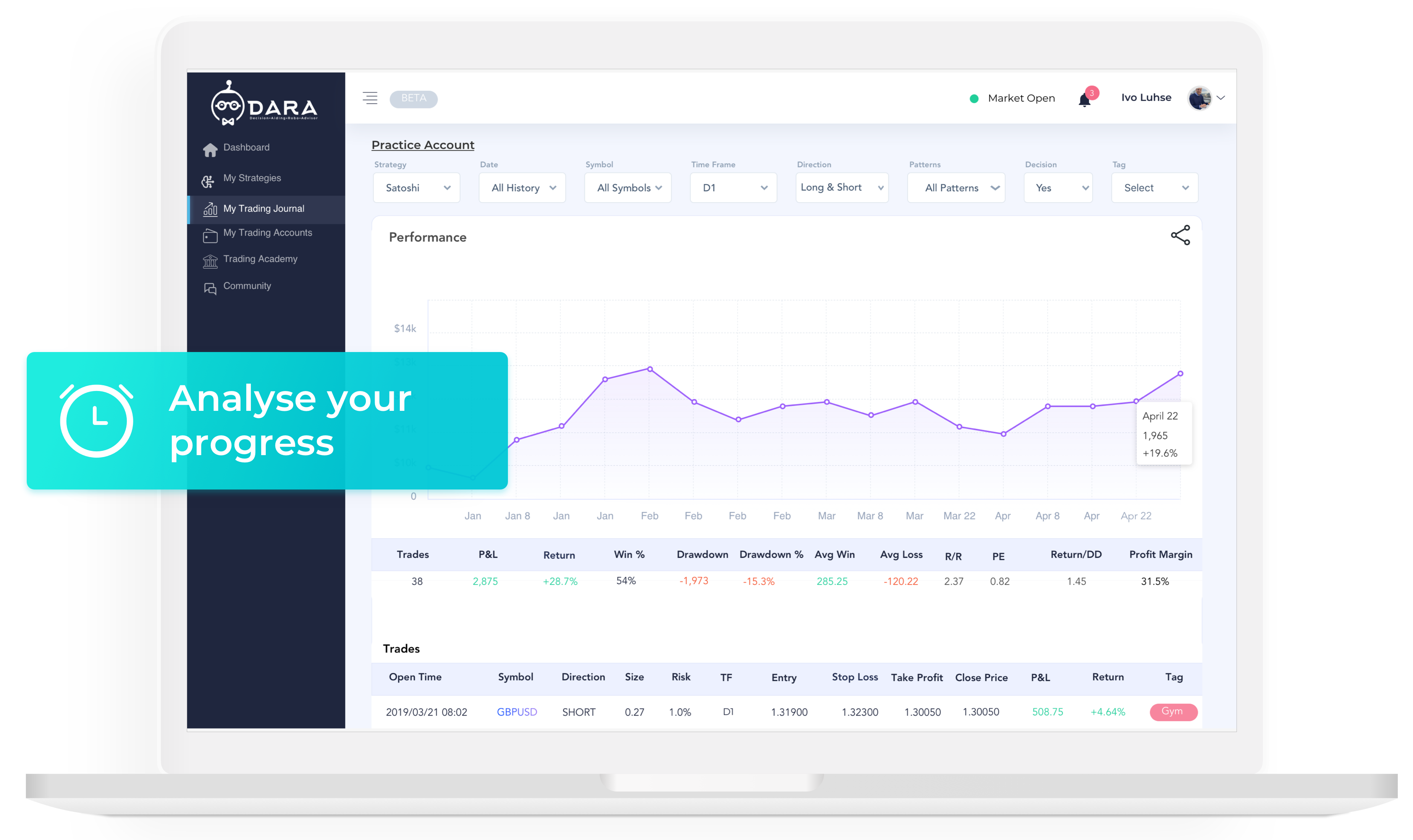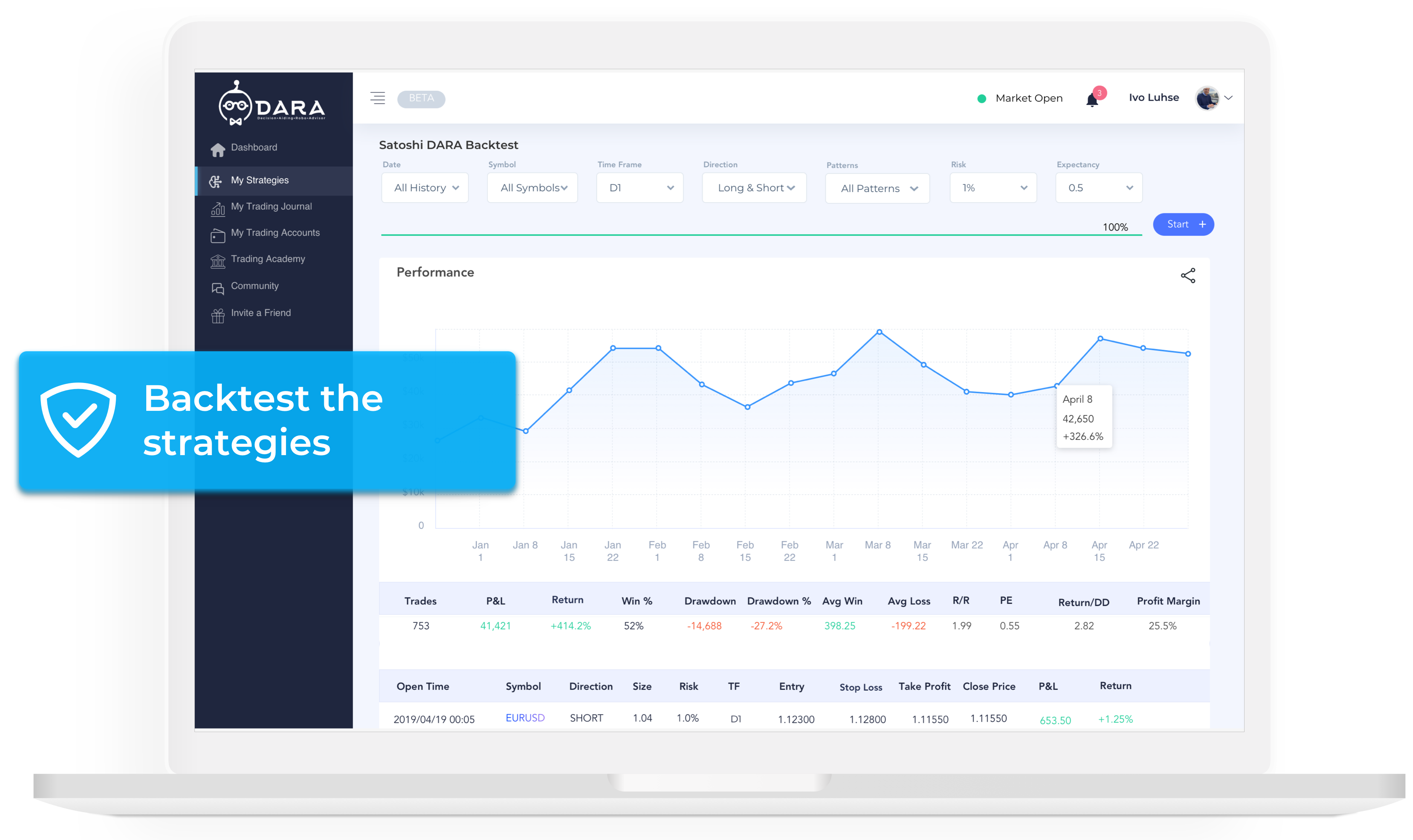 DARA is a web app that sends you AI-generated trading signals for your favourite markets (Forex, Equities, Commodities, Cryptocurrencies coming early 2020). You can instantly backtest strategies performance across multiple markets and time frames. Join us for early beta and get unlimited number of signals for free.