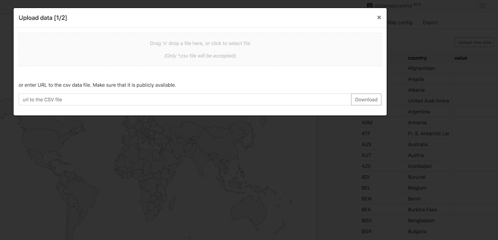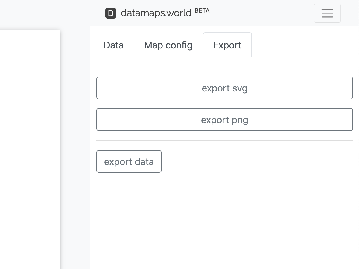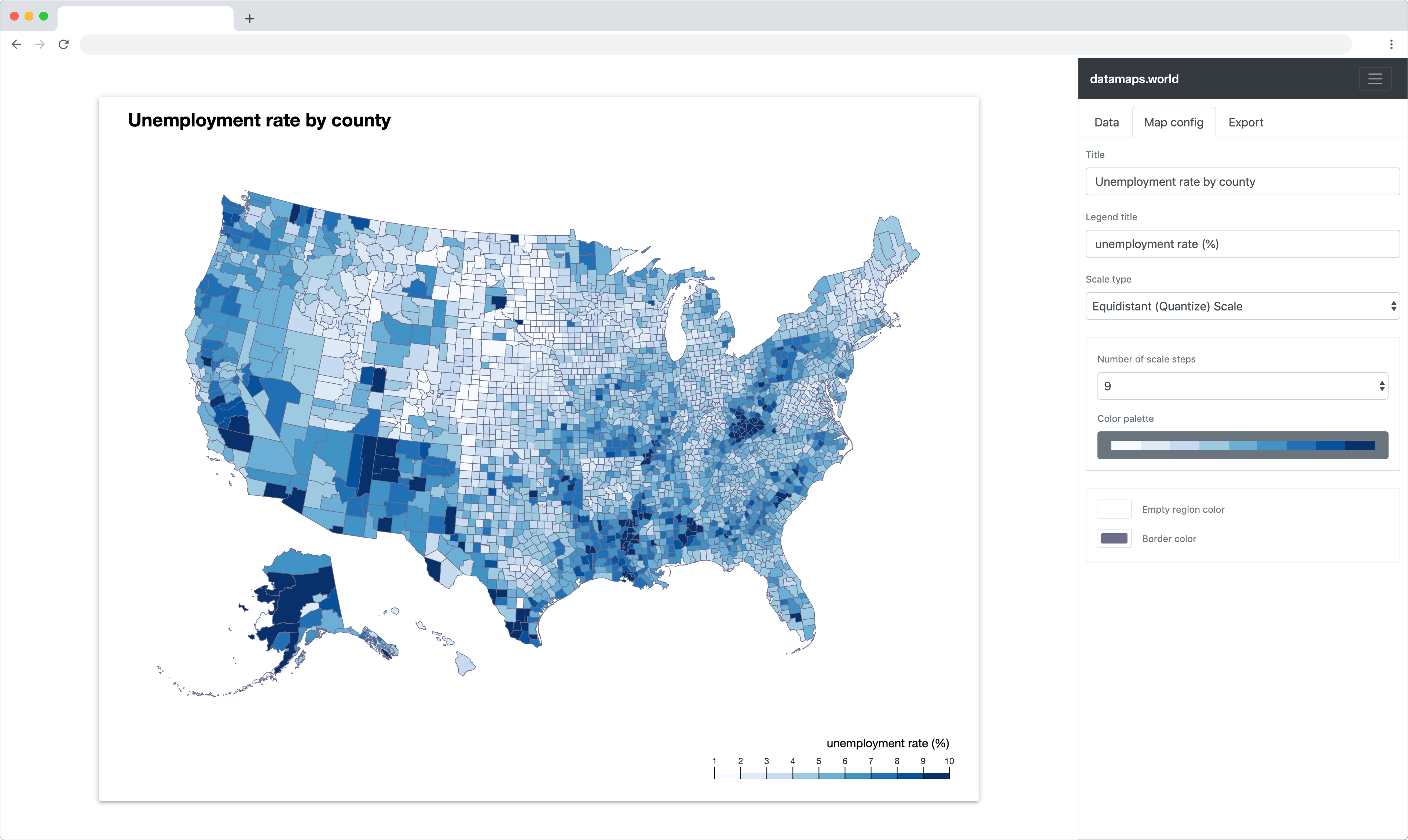 Create beautiful interactive data maps Visualize your geospatial data with a simple, yet powerful platform. Once your data map is finished, datamaps.world makes it easy to share it with others.