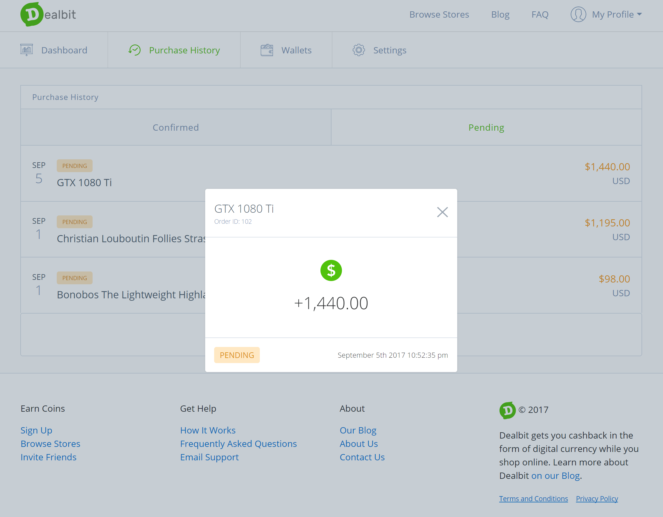 Dealbit pays you to shop online at your favorite stores via cryptocurrencies, Bitcoin or Ethereum. The site is very similar to Ebates but instead of waiting months for your cashback at Dealbit you get it right away and in cryptocurrency. We create free wallets and manage everything for newcomers to this technology. We have a grand vision that we will be able to get your favorite brands to pay you not just for shopping but also for seeing ads in the future. Among those things our app even lets you spend the digital currency you have earned, as cashback, to buy exclusive things and receive discounts you can only get using these magical digital currencies.