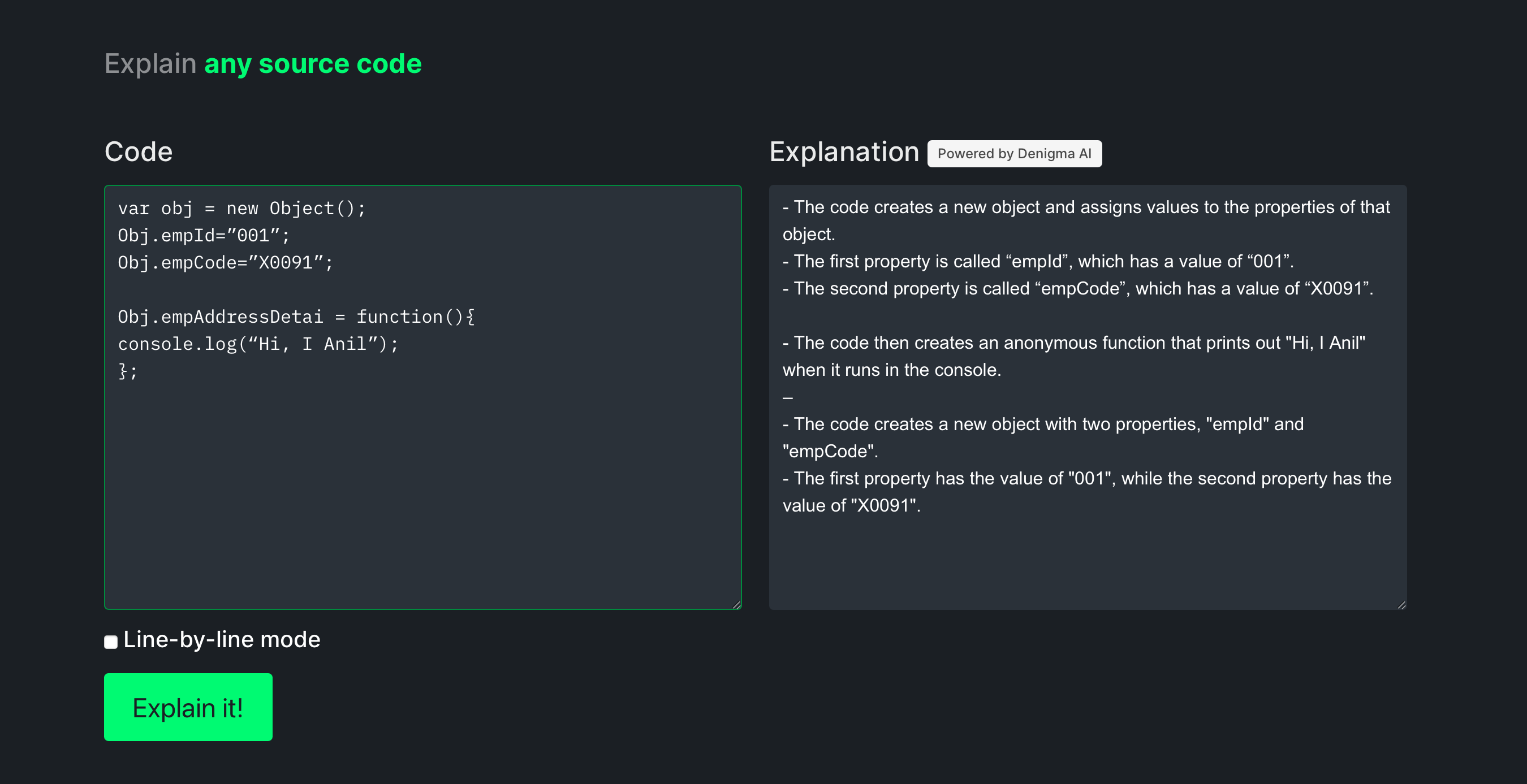 Denigma is an AI that reads and explains code in understandable English. 90% of developers spend their time reading and trying to understand code and only 10% actually coding. Denigma makes the job of understanding existing codebases 10x easier. Lots of programmers have told us that this changes the speed and efficiency at which they: - learn to code - understand existing codebases for work - write new code - explain code languages to students/ entry - level employees Denigma is a great tool for any developer to have in their back pocket.