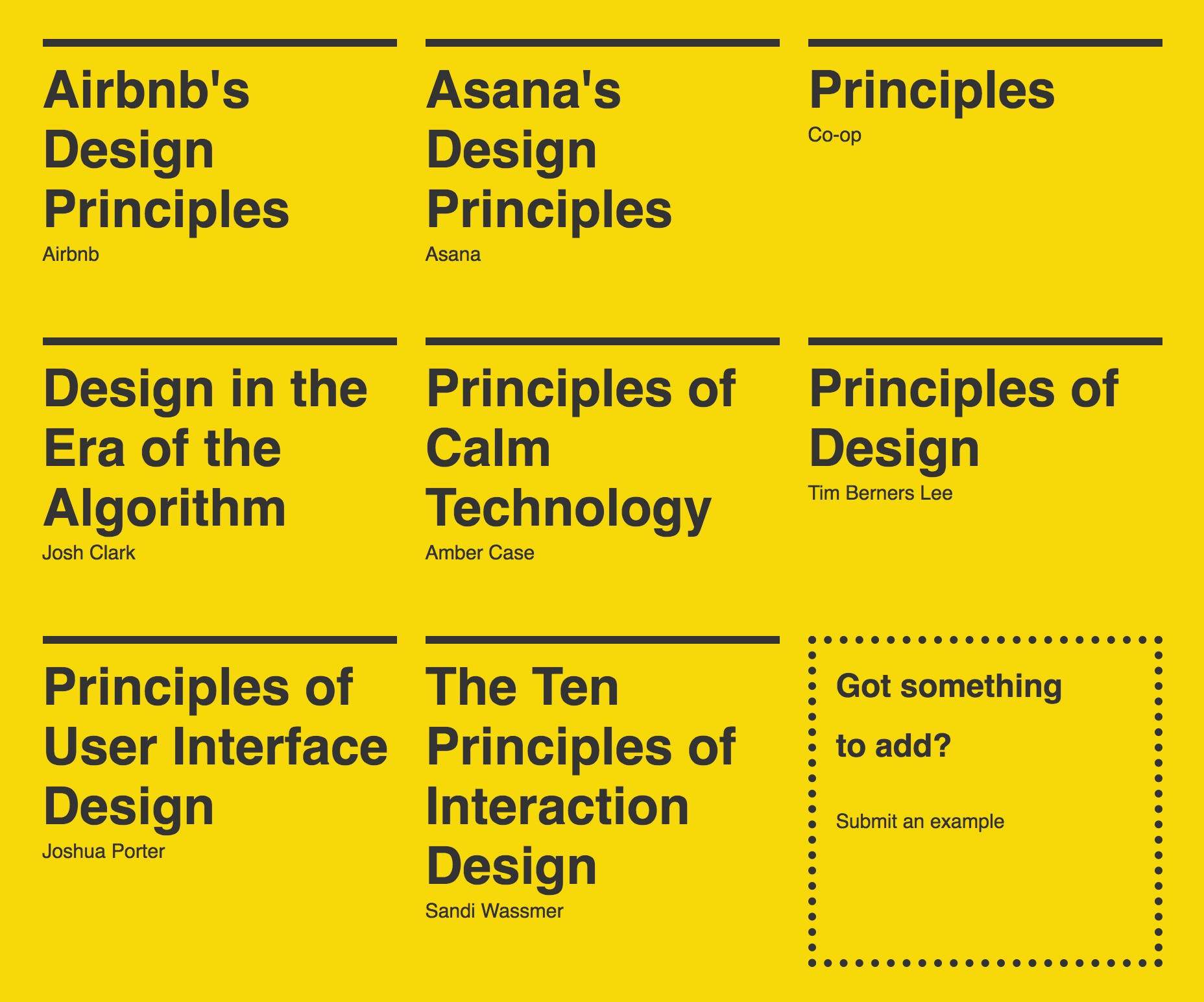 An open source resource created to help you understand and write Design Principles. What are Design Principles? Design Principles are a set of considerations that form the basis of any good product.