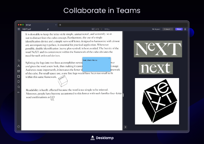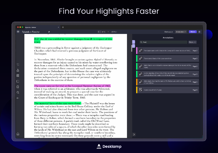 Desklamp is a collaborative PDF reader that changes the way you read. Desklamp aims to be the easiest way to save your insights as you read, and provide you with a way to quickly recover and go back to those insights whenever you need to. Here are some cool things you can do with Desklamp: 1. 📝 Make beautiful and easily accessible margin-notes as you read. Link ideas in your notes back to the source location in the text. 2. 🔍 View and search through all your highlights and annotations at a glance without having to scroll through each page. 3. 🗺️ Navigate across far-apart sections in PDFs without having to scroll up and down 4. 👥 Collaborate on PDFs and notebooks in real-time with teammates So whether you’re a doctor studying clinical trials, a lawyer scrutinising contracts, a consultant skimming through reports, an engineer perusing papers, or even a circus master reading How To Shoot A Person From a Cannon For Dummies, we’re sure Desklamp has something for you. Do give it a try; it’s completely free, and we can’t wait to hear your feedback 🙂 Desklamp is available on the laptop as a web app and a native desktop app. Check it out at https://desklamp.io/!