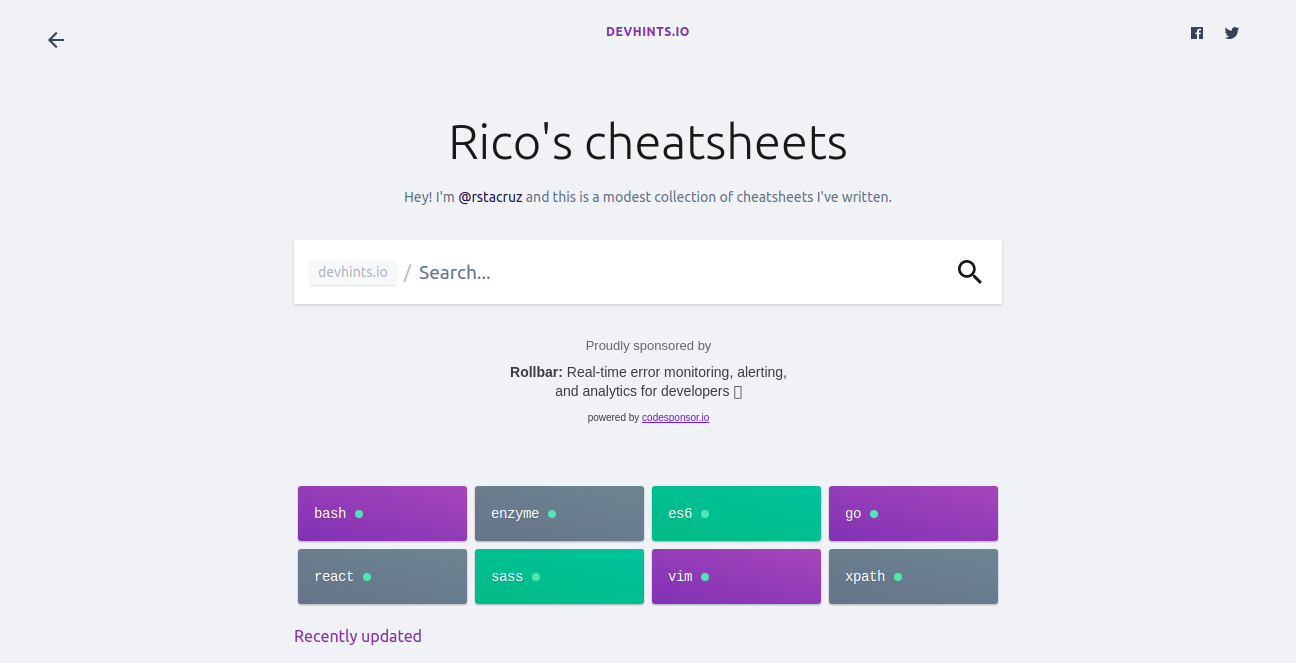 Rico's cheatsheets Hey! I'm @rstacruz and this is a modest collection of cheatsheets I've written.