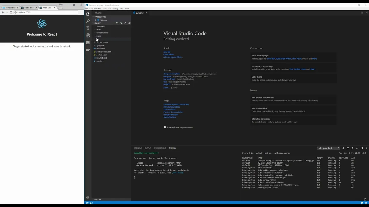 https://github.com/covexo/devspace With a DevSpace, you can build, test and run code directly inside any Kubernetes cluster. You can run "devspace up" in any of your projects and the client-only DevSpace CLI will start a DevSpace within your Kubernetes cluster. Keep coding as usual and the DevSpace CLI will sync any code change directly into the containers of your DevSpace. No more waiting for re-building images, re-deploying containers and restarting applications on every source code change. Simply edit your code with any IDE and run your code instantly inside your DevSpace.