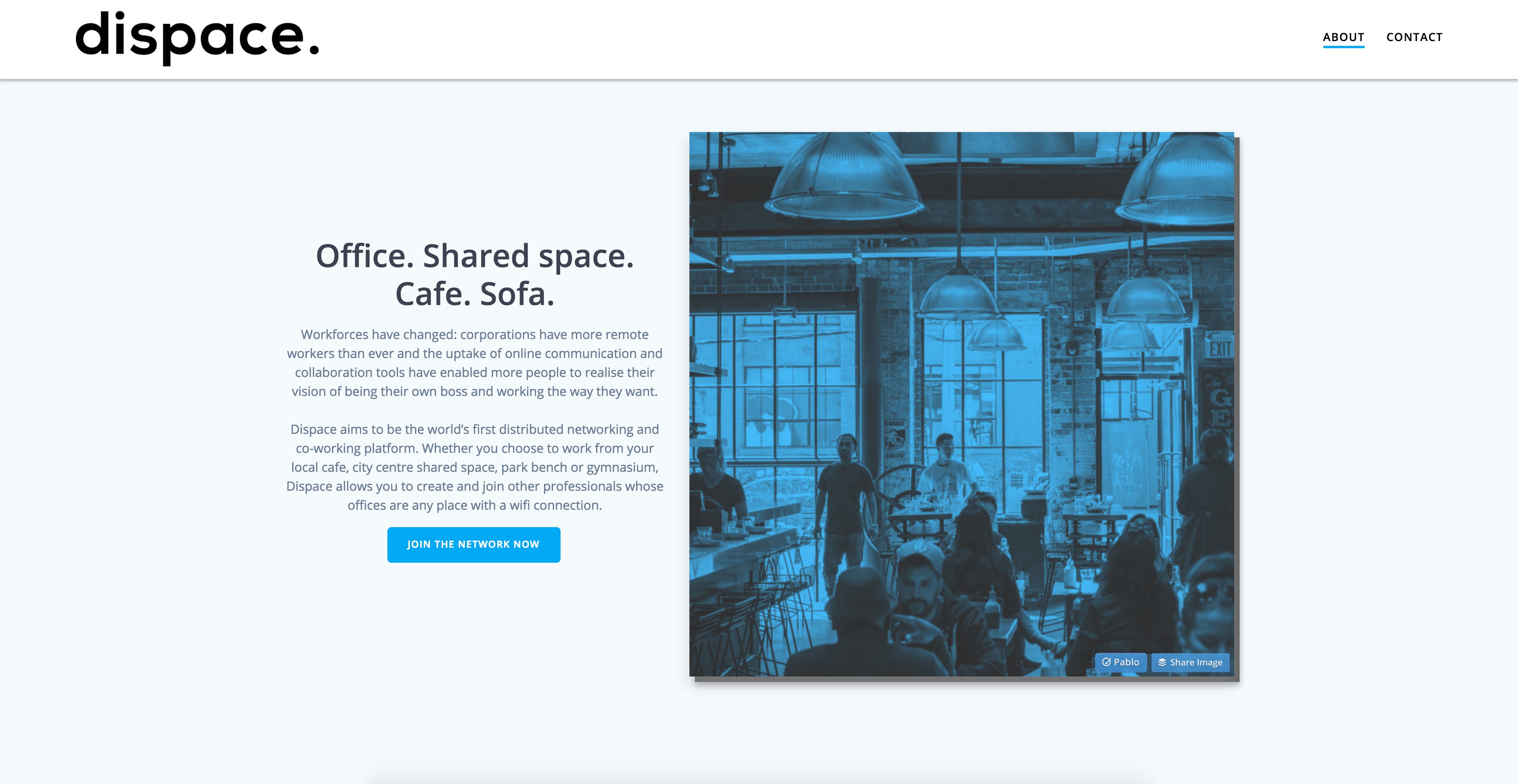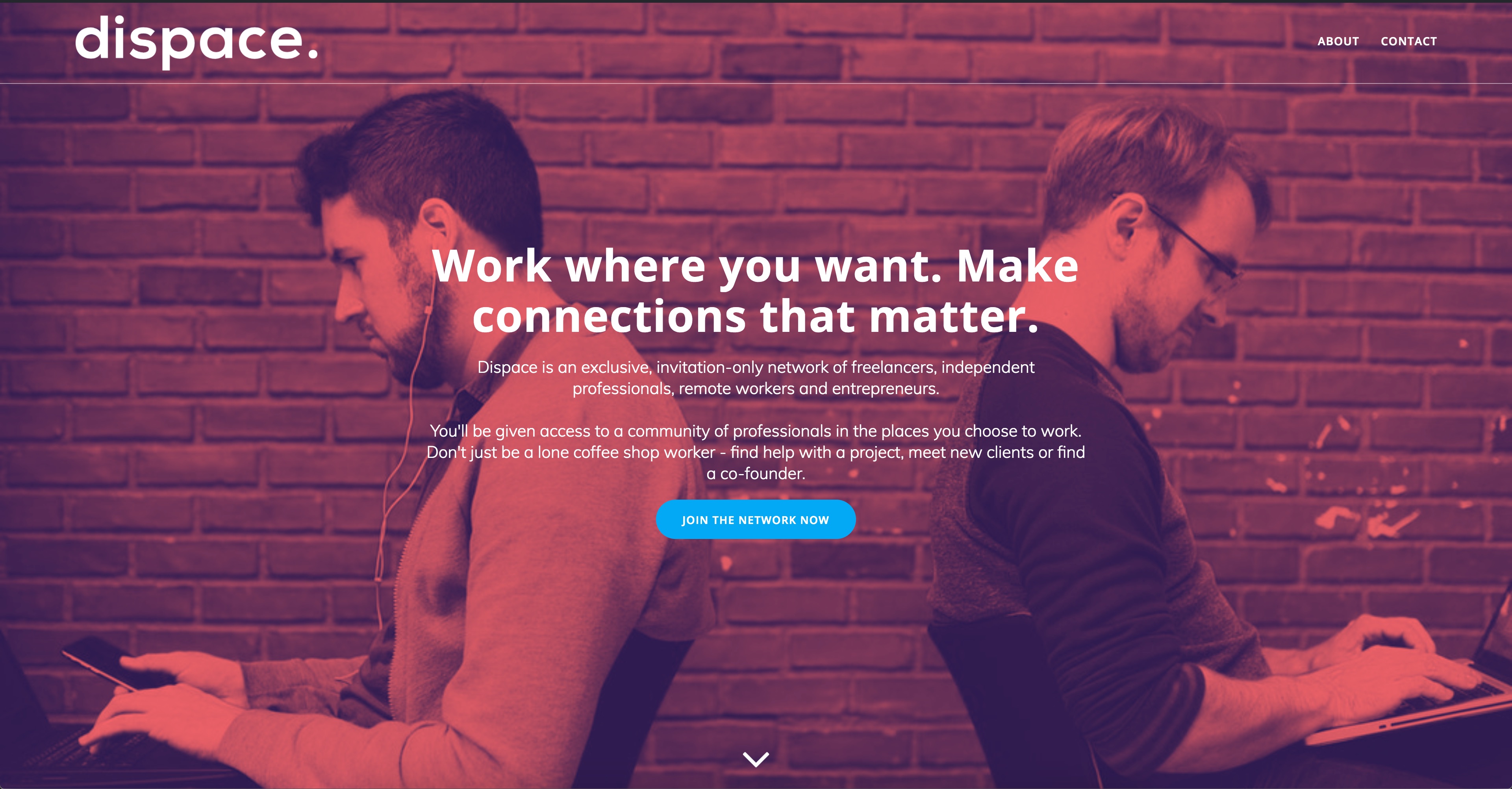 Dispace is an exclusive, invitation-only network of freelancers, independent professionals, remote workers and entrepreneurs. You'll be given access to a community of professionals in the places you choose to work. Don't just be a lone coffee shop worker - find help with a project, meet new clients or find a co-founder.
