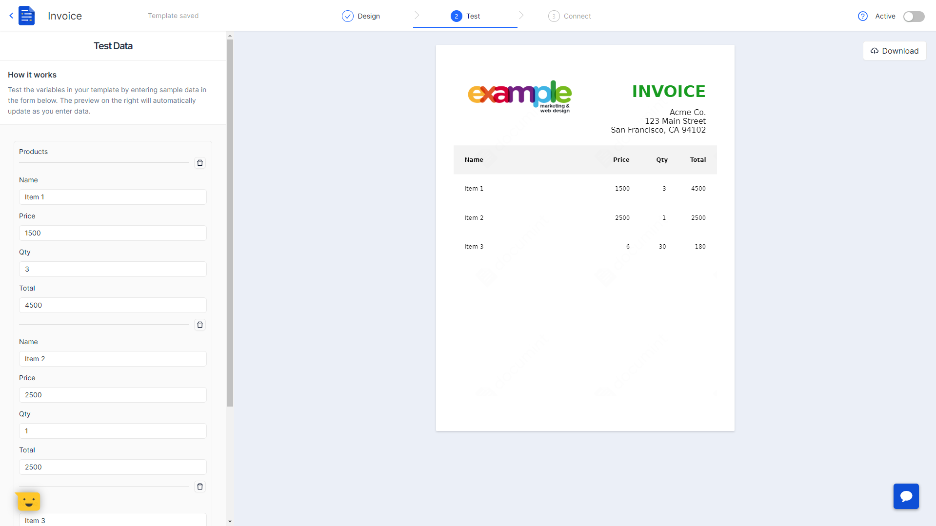 Documint is a PDF automation service that makes generating simple to complex documents a breeze. Templates are created using the drag-and-drop Template Designer. Create documents using the Zapier integration or REST API.