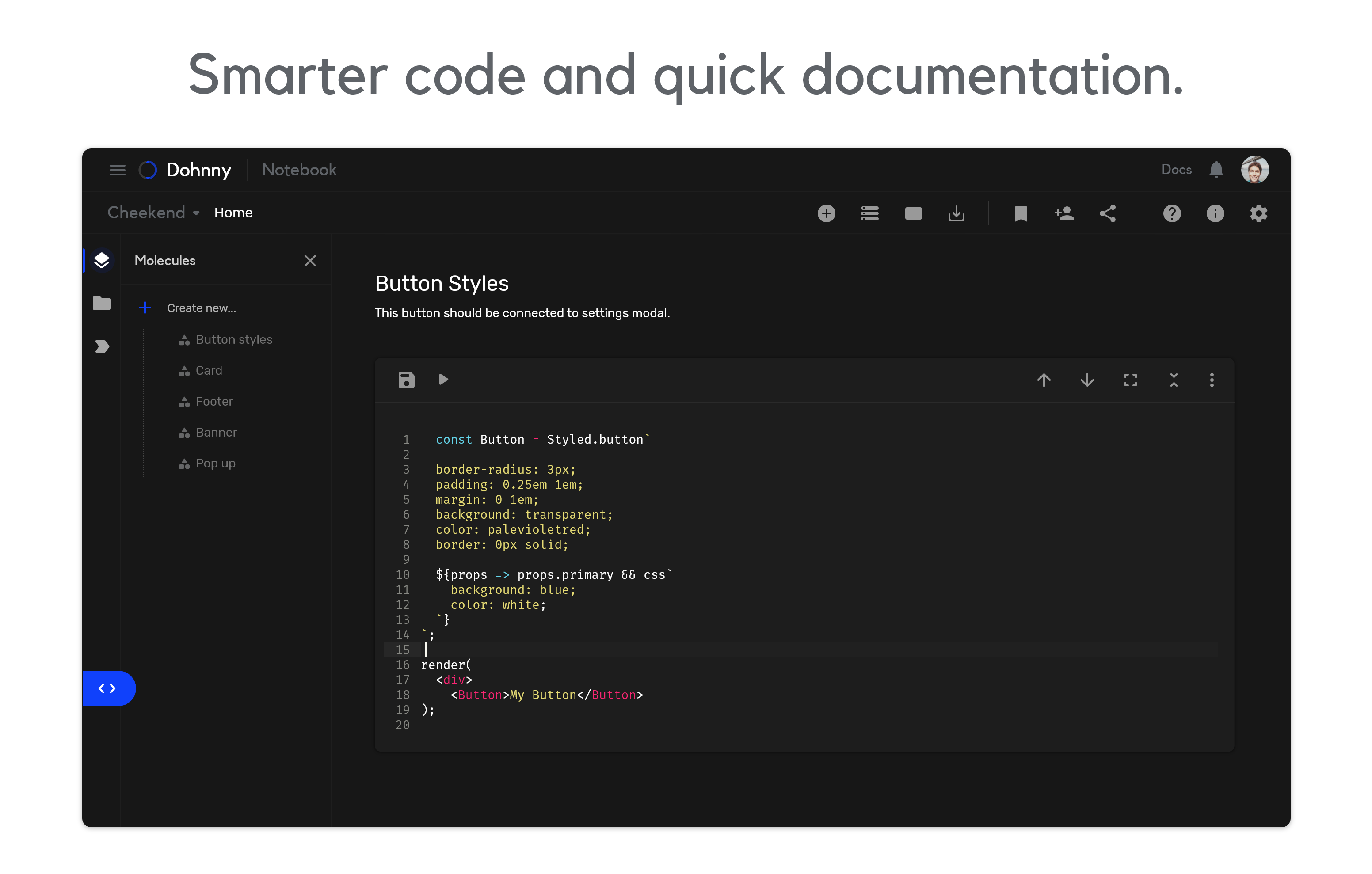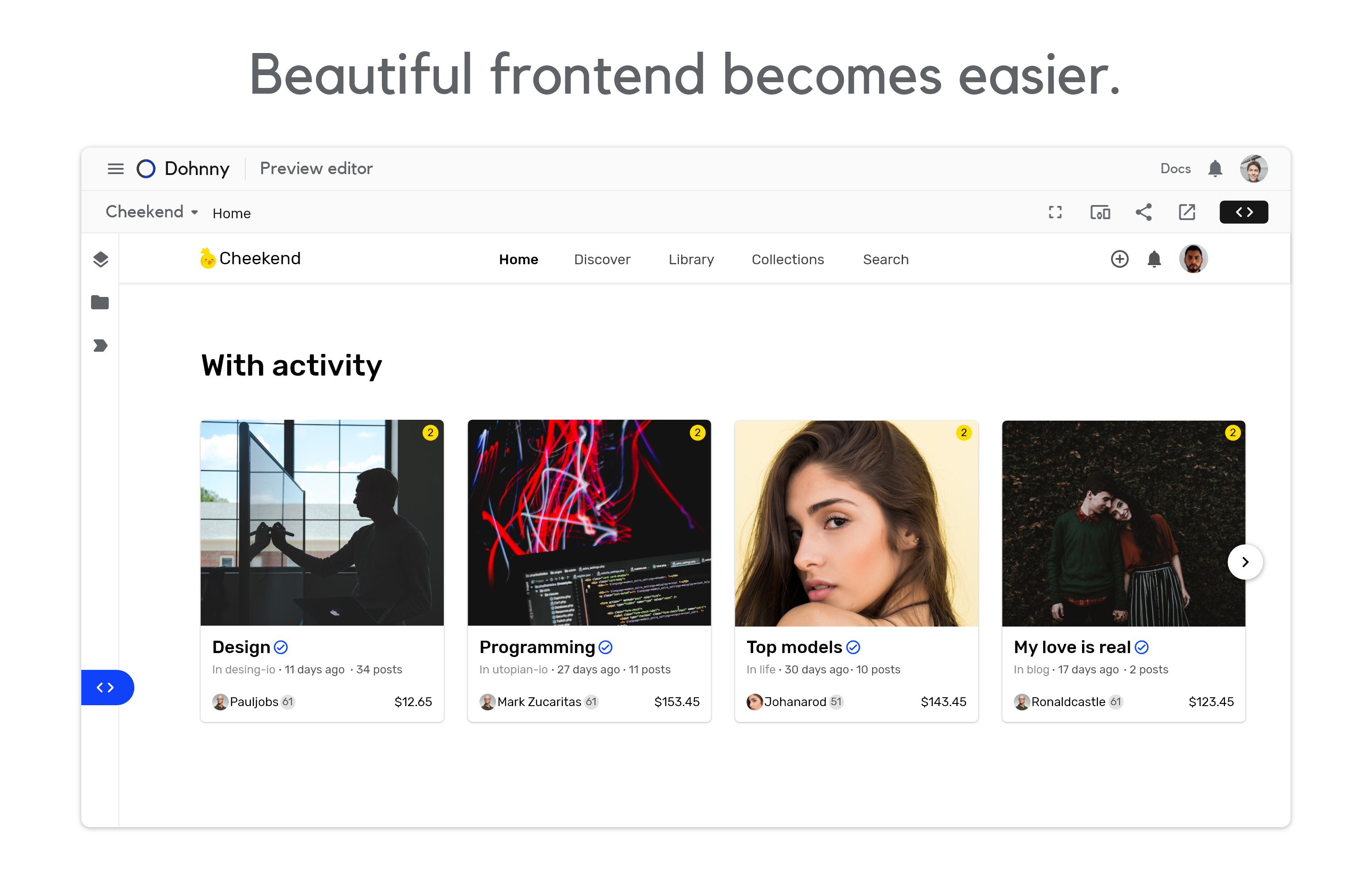 Like Firebase but for Frontend. Dohnny is an online development tool that changes the way to think and visualize your app, so you can invest your time as an architect, putting all your attention on creating incredible solutions instead of all the time consuming and repetitive tasks of development.