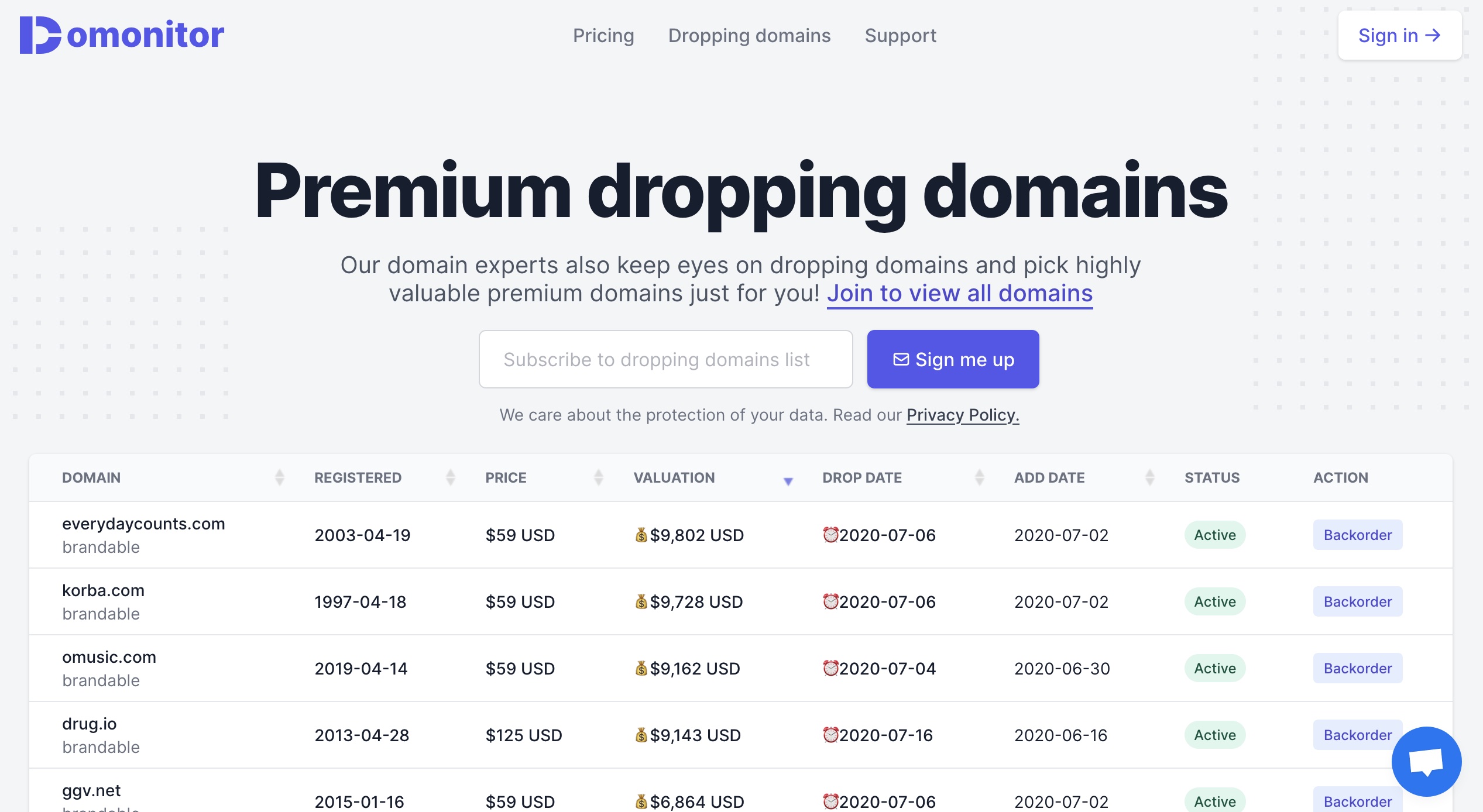 We help you to monitor your dream domains by keeping track on price changes every minute.