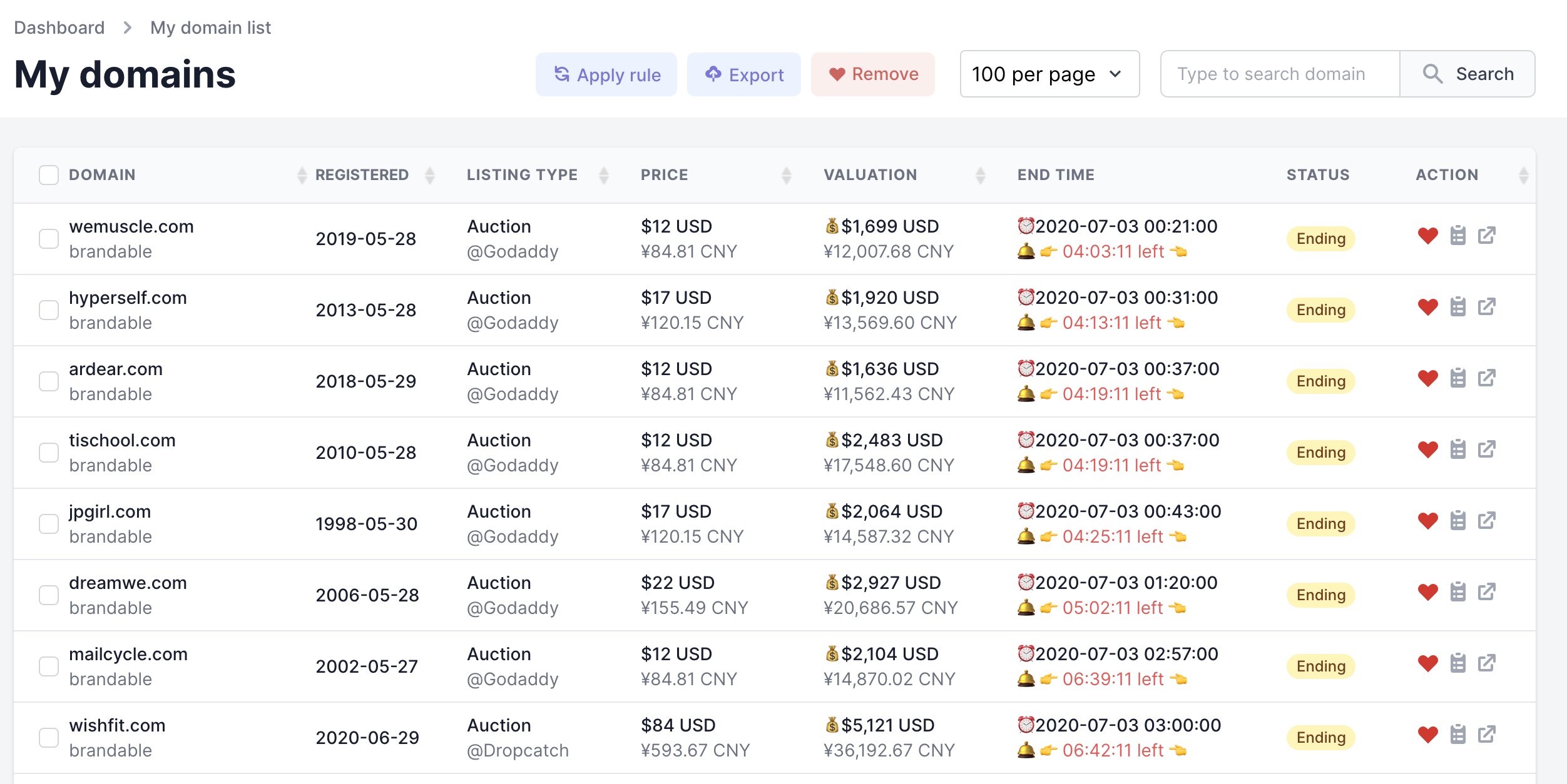 Daily handpick premium domains monitoring! We help you to monitor your dream domains by keeping track on price changes every minute.