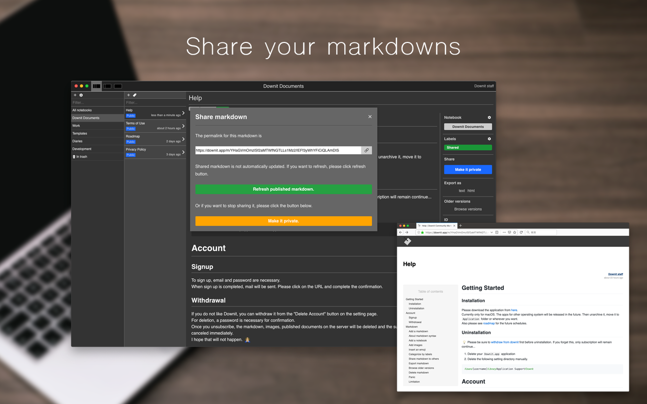 Dowint is a very simple markdown editor. Although simple, it has many features. However, many features should not interfere with your markdown editing. Downit simply helps your markdown editing. After 30 days trial, you can choose $2.5/month or $27/year for subscription.
