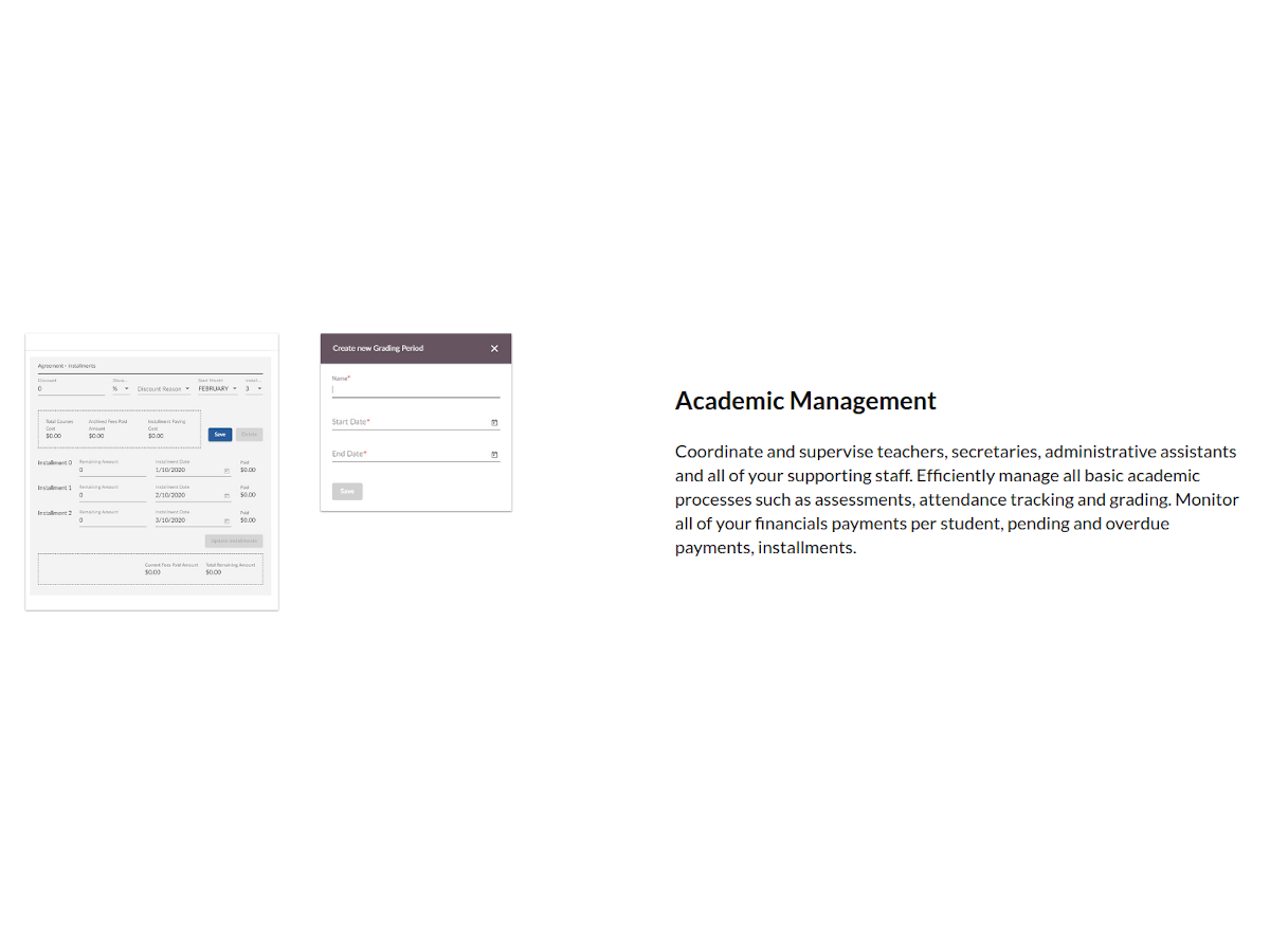 3. DreamClass is a cloud-based School Management System that eases the load of your administrative tasks and speeds up your daily routines. Keep up with your student admissions, monitor academic progress, track student attendance, manage your payments and invoices, create comprehensive reports and insights, contact with your students and teachers, all in a blink of an eye with a super-easy user interface. Getting started is as simple as 1-2-3. Just register for a no-strings-attached free trial, follow a straightforward customization process and you are ready to go in a few minutes! From traditional K12 schools to colleges, from dance studios to sport academies, DreamClass will relieve your administrative burden and allow you to focus on what is important, your students and teachers!