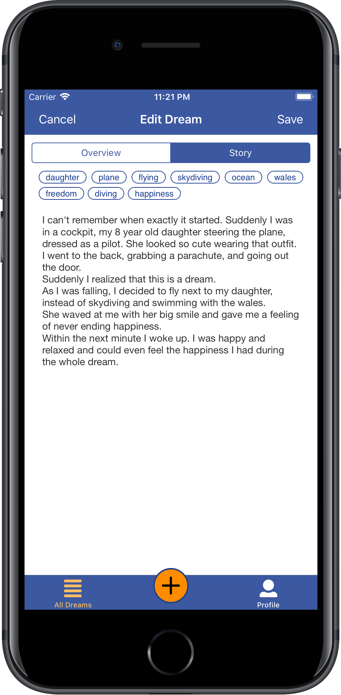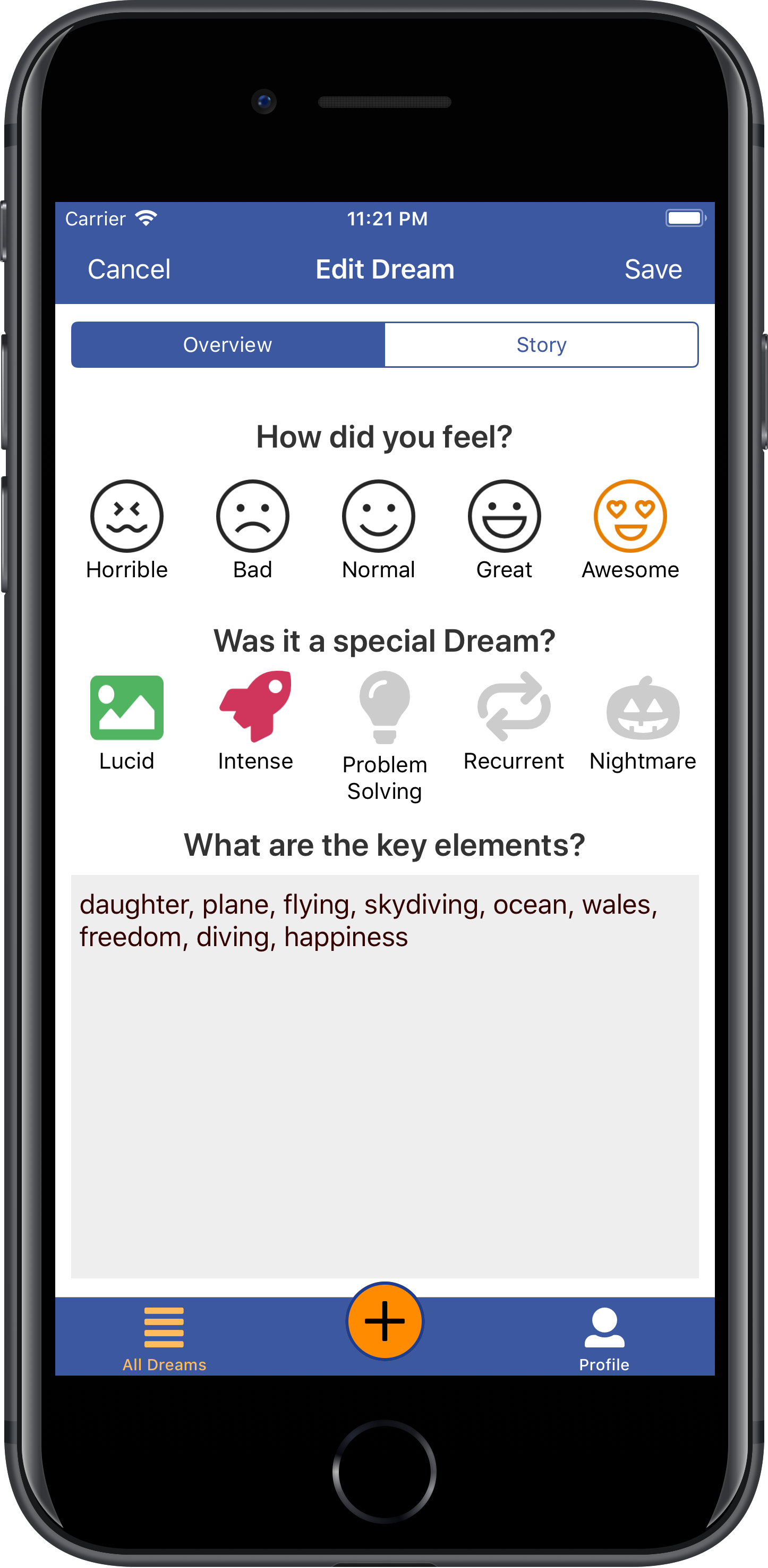 Imagine you're waking up, wanting to record the dreams you had that night, but are just too tired to take the 15 minutes to do it. While fighting with yourself, it fades away. Another lost dream! DreamFort is from the ground up designed to facilitate rapid and effortless dream journaling.