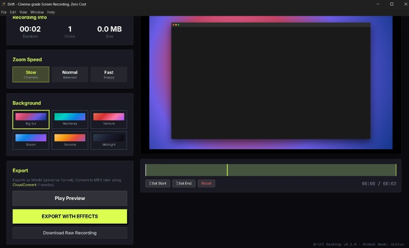 Professional screen recording studio that you can download Cinematic auto-zoom, privacy-first, no subscriptions. and you can choose between raw and the effect recording
