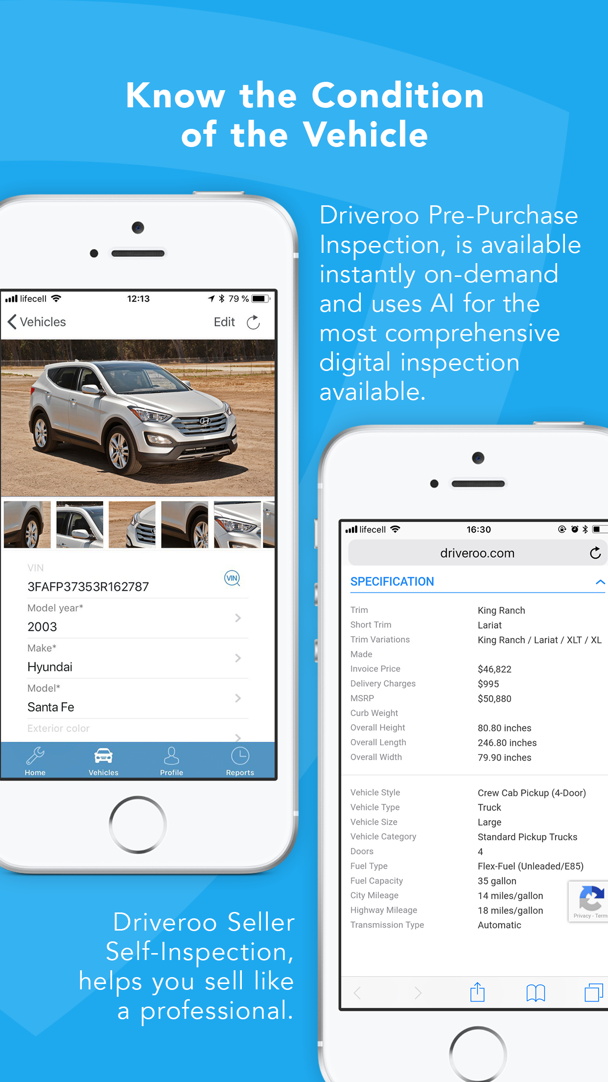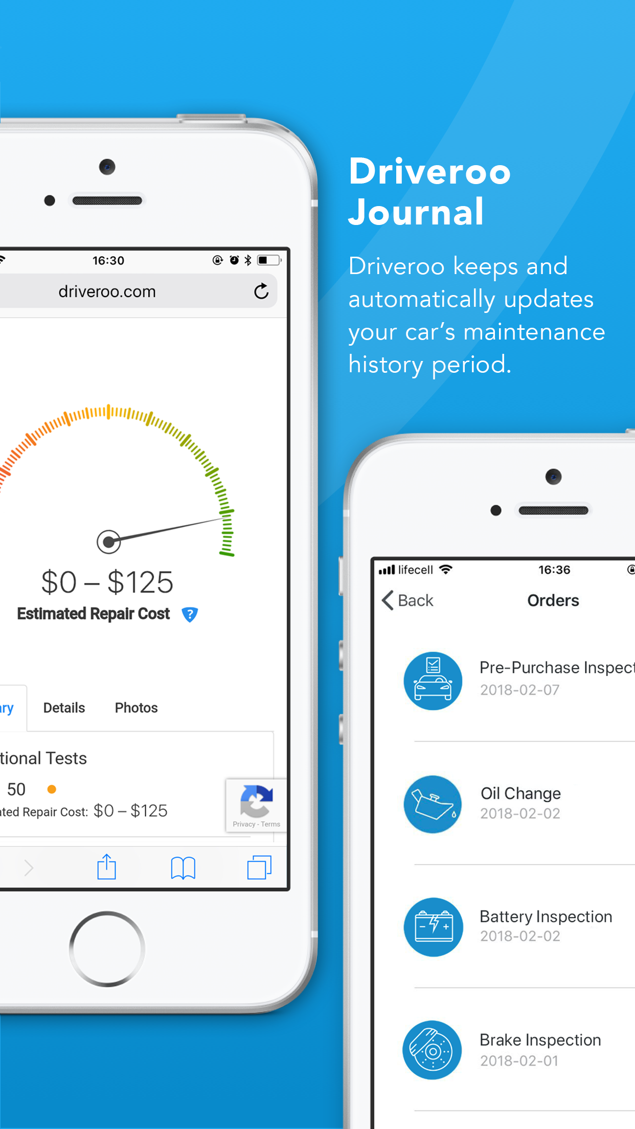 Driveroo Car App connects drivers to a network of local, ASE certified technicians who are ready to take instant care of your car. No scheduling. No waiting. Driveroo’s AI-driven inspections are make and model specific, so your car receives the most comprehensive inspection available in the market. We analyze millions of data points and known issues with your car and direct your technician to potential issues and safety recalls.