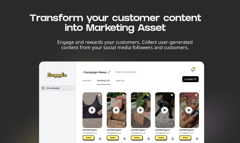 Dropppin allows E-commerce sellers to collect video content from their customers easily. Creating social media content can be time consuming and Dropppin provides ready to be edited vertical footage to post on social media.