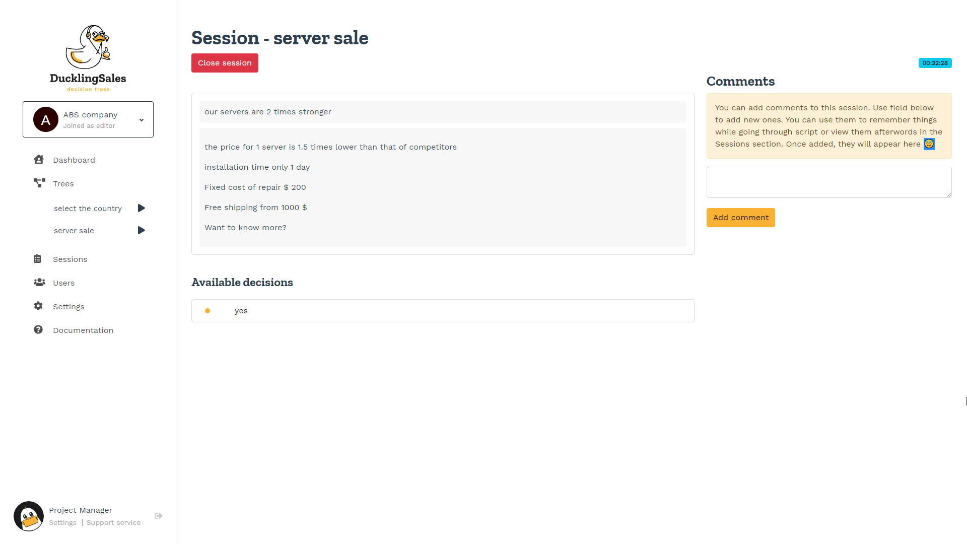 It's basically a decision tree software for sales scripts, client support teams, production lines and etc. People can build trees and then invite salespeople to make cold calls for example, or support team to resolve tickets and etc The main intention behind it was that all competitors cost A LOT of money. Basically, everyone in the niche sells decision trees for 25 per user, which is crazy for small- or medium-sized businesses. So we tackled the problem by building a really cheap back-end with golang. And now we can offer this service for free, altho it's MVP and there are not much features in it still, so we don't have paid plans, but we probably will have it for costly features such as uploads and email messages right from the dashboard.