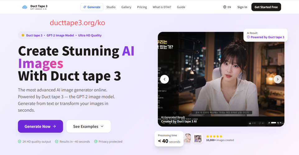 Duct Tape 3 is an online AI image generator and image editing platform powered by GPT Image 2. It helps users create high-quality images from text prompts, edit and restyle uploaded images, and produce marketing visuals, product images, posters, and creative assets in seconds. It is designed for creators, marketers, ecommerce teams, designers, and anyone who needs fast, high-quality visual content without complex setup.