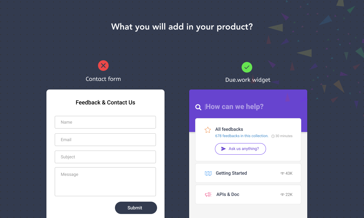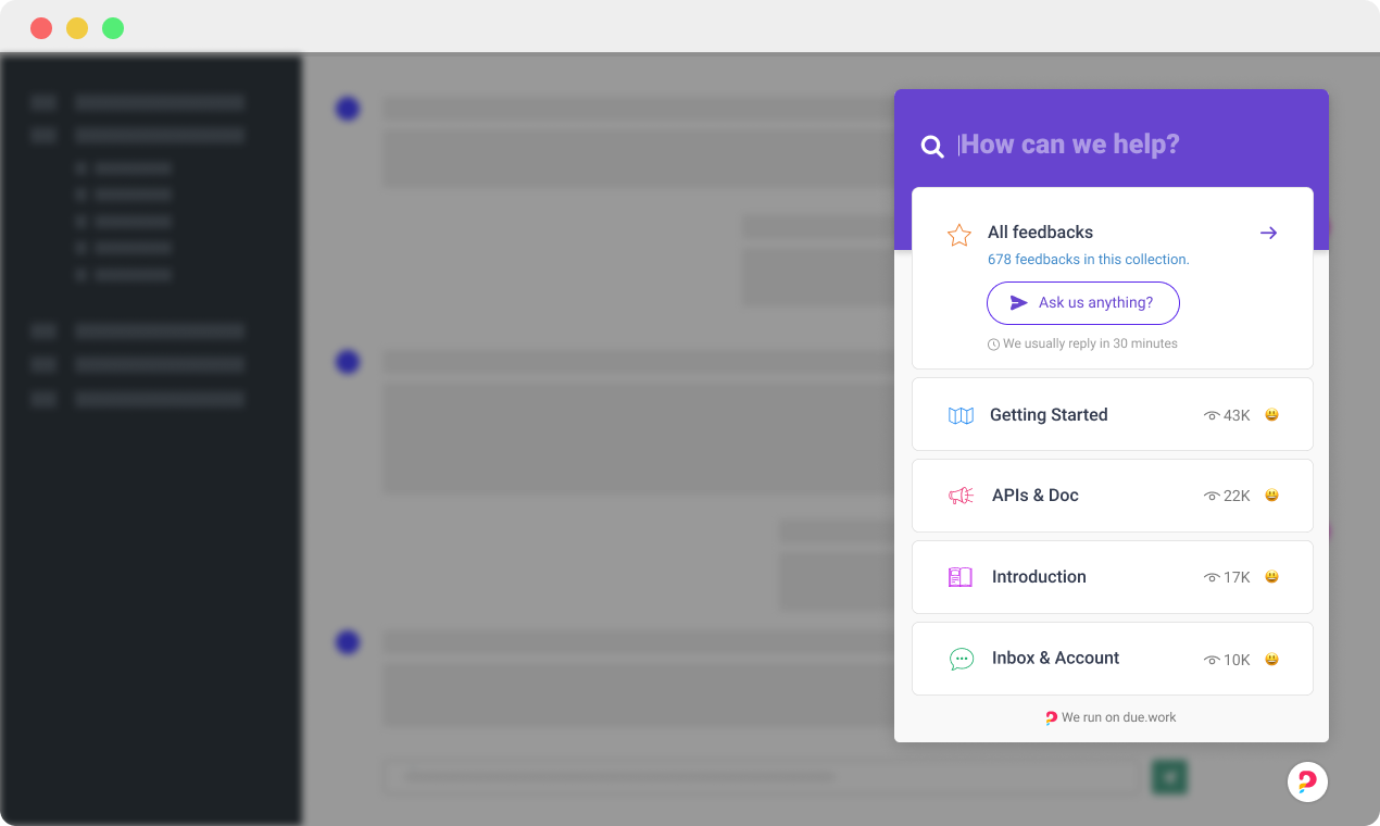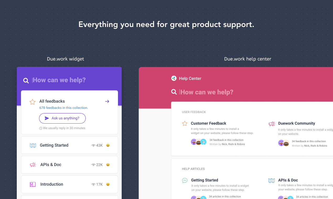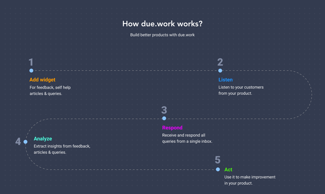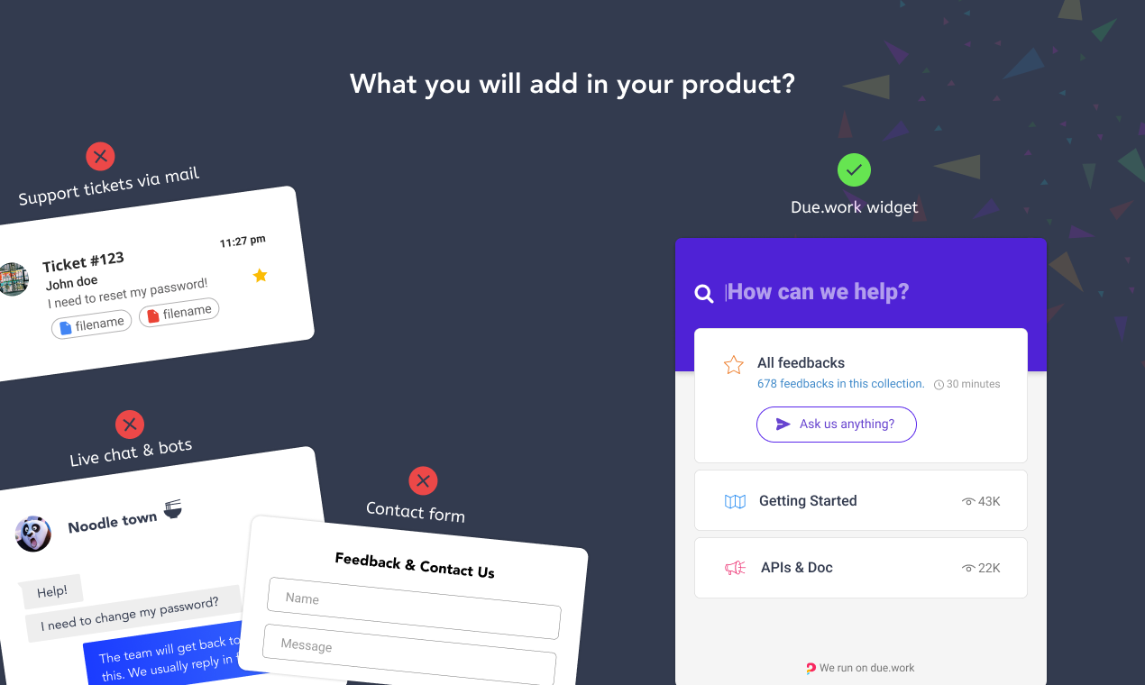 With due.work you can integrate a support widget with just 1 line code, from which your customer can raise tickets, create feedback and guide themselves using self serve guides.